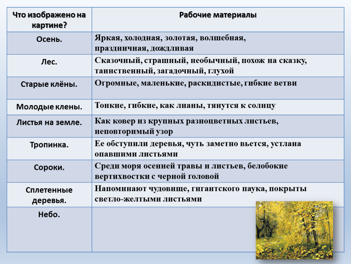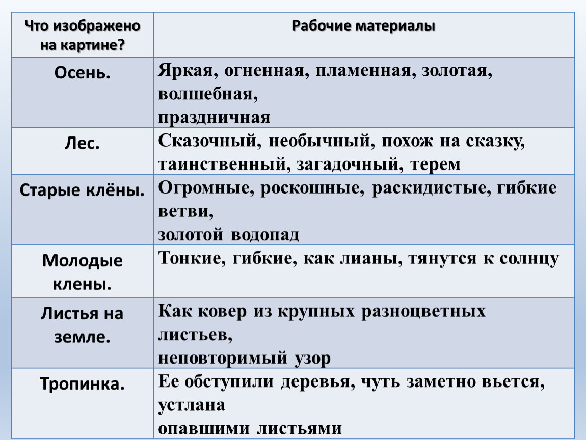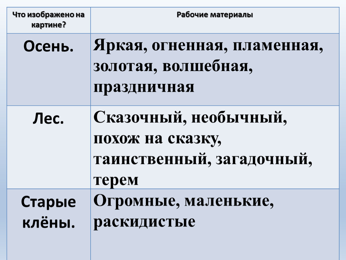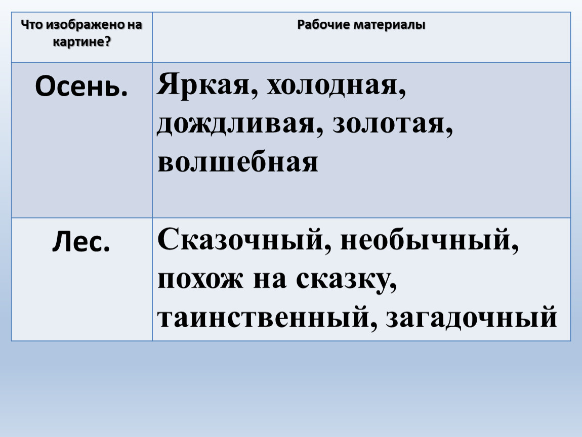 Попробуйте самостоятельно составить рассказ об осени. Расскажите об осеннем настроении. При составлении рассказа вы можете использовать репродукцию картины И.С. Остроухова, опорные слова и план.