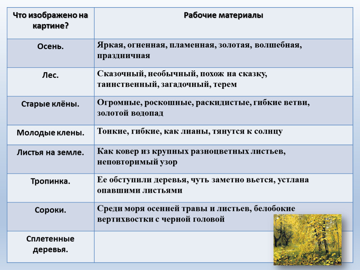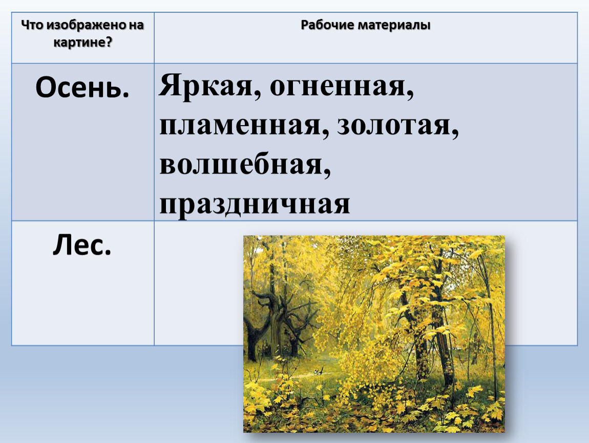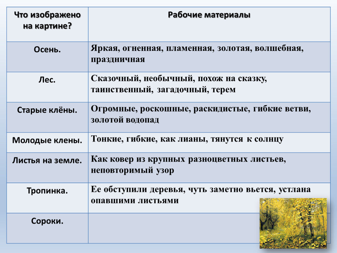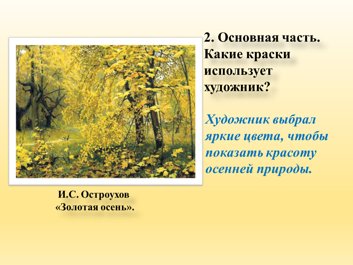 Тема: Составление рассказа по репродукции картины И.С. Остроухова «Золотая осень».