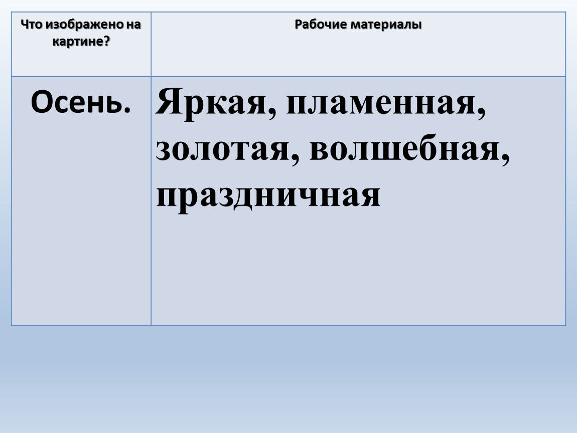 Осень. | Яркая, огненная, пламенная, золотая, волшебная, праздничная |