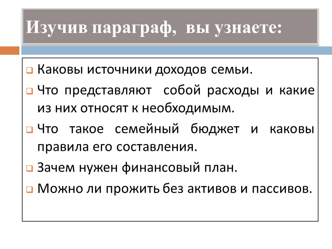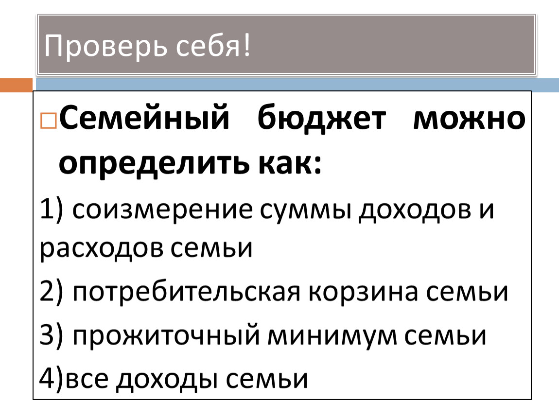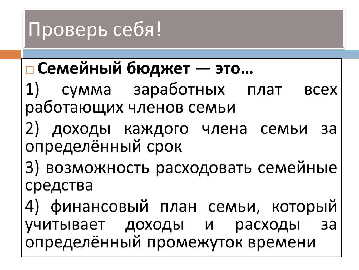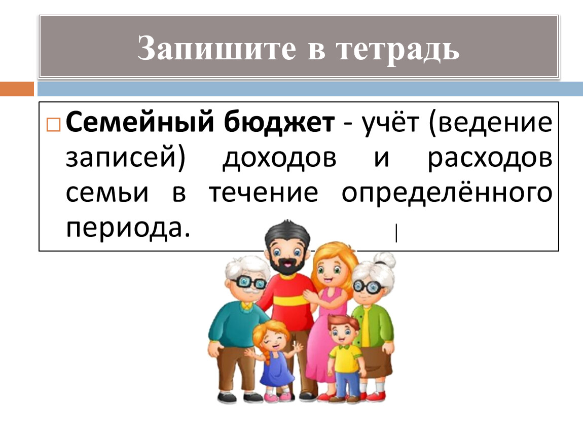Семейный бюджет - учёт (ведение записей) доходов и расходов семьи в течение определённого периода.