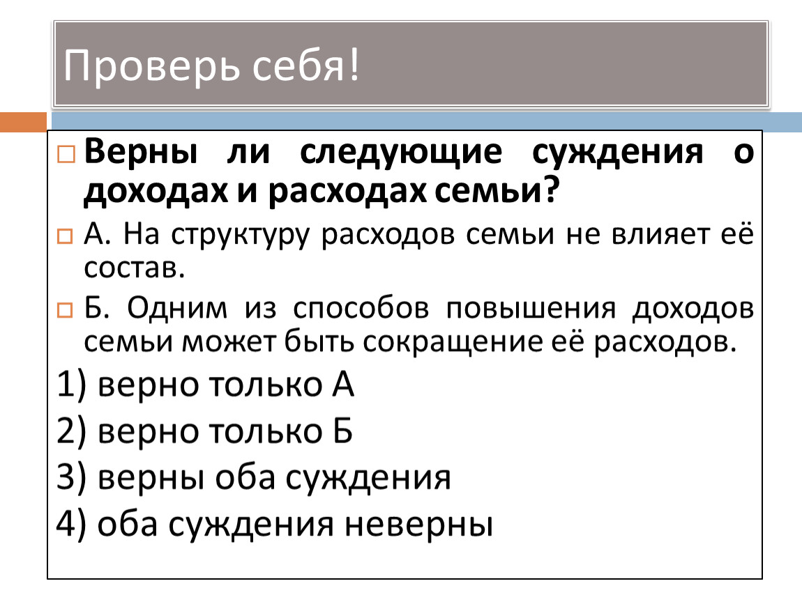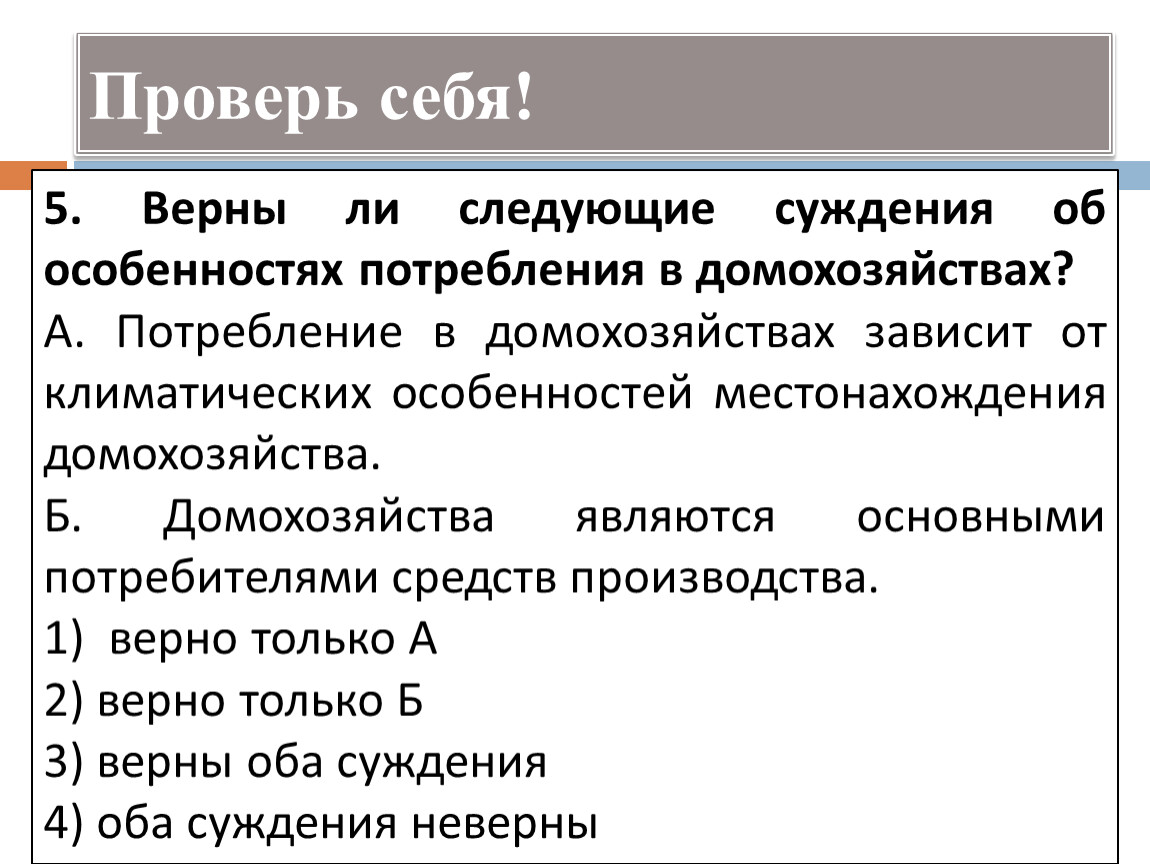 5. Верны ли следующие суждения об особенностях потребления в домохозяйствах?