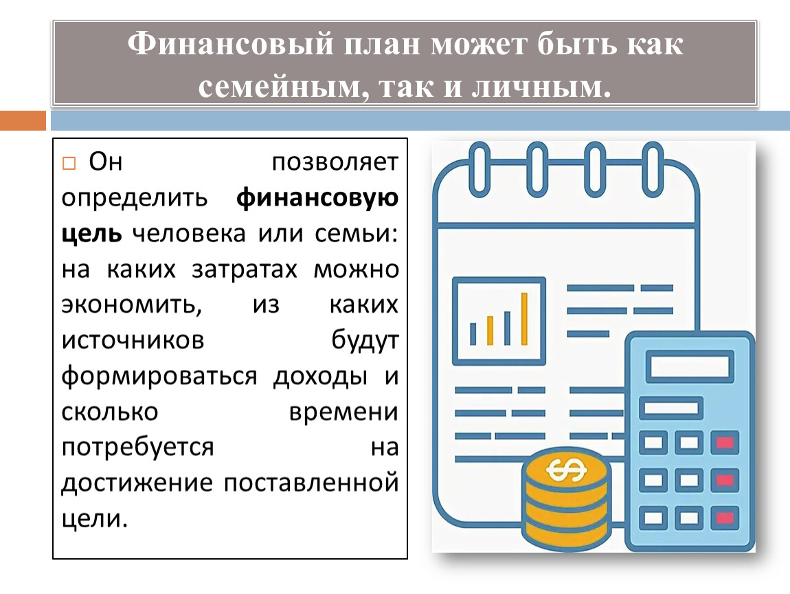 Он позволяет определить финансовую цель человека или семьи: на каких затратах можно экономить, из каких источников будут формироваться доходы и сколько времени потребуется на достижение поставленной цели.