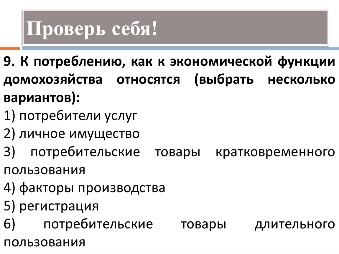 9. К потреблению, как к экономической функции домохозяйства относятся (выбрать несколько вариантов):
