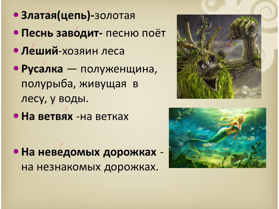 Русалка — полуженщина, полурыба, живущая в лесу, у воды.