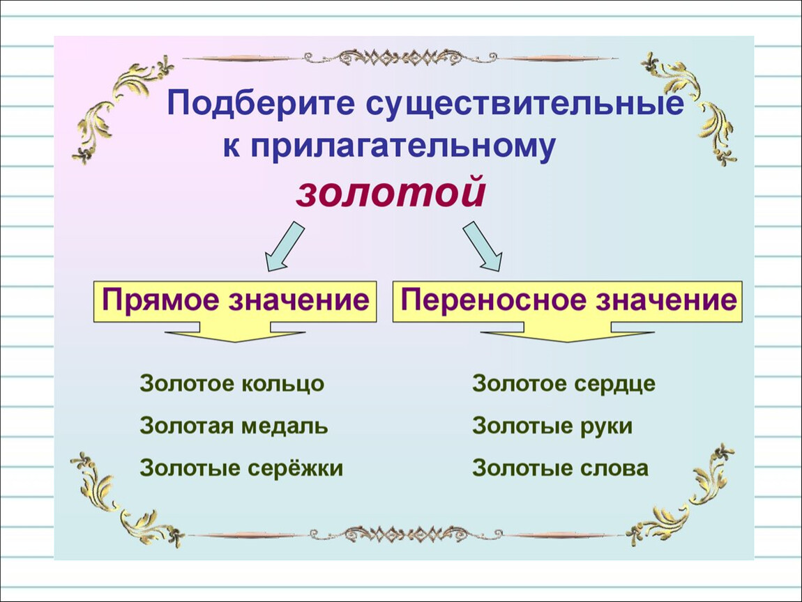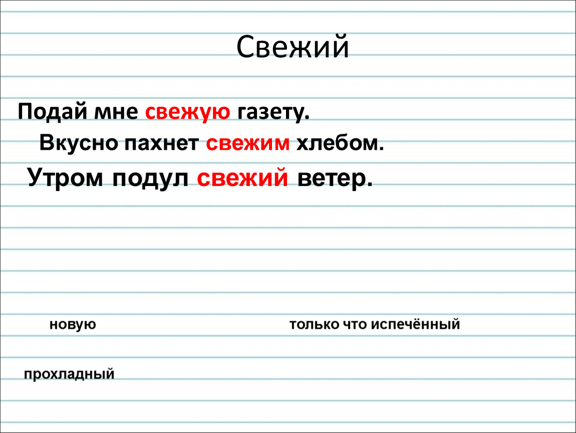 Запиши слова по их лексическому значению.