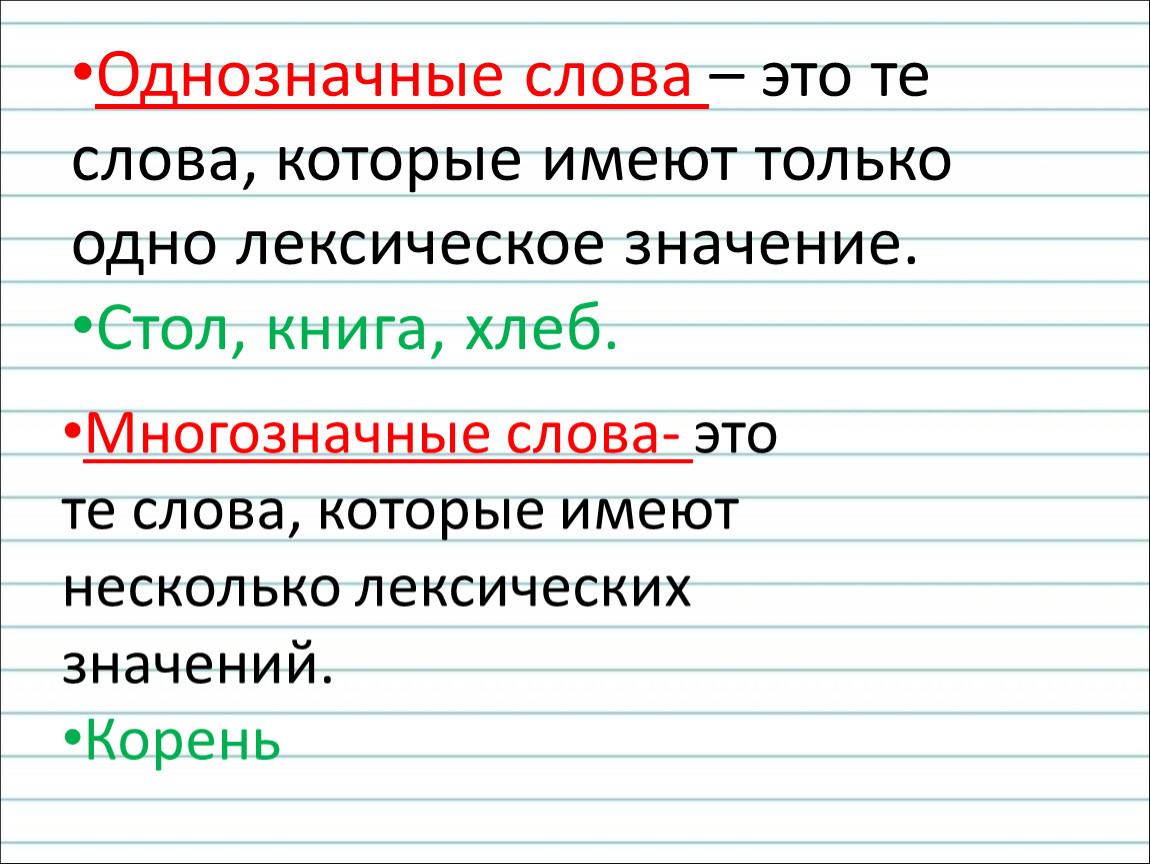 Однозначные слова – это те слова, которые имеют только одно лексическое значение.