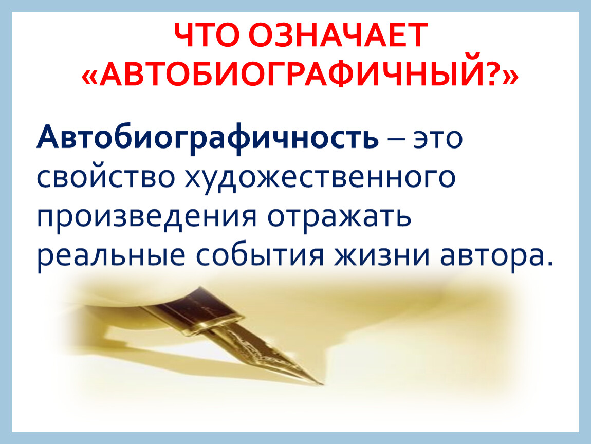 Автобиографичность – это свойство художественного произведения отражать реальные события жизни автора.
