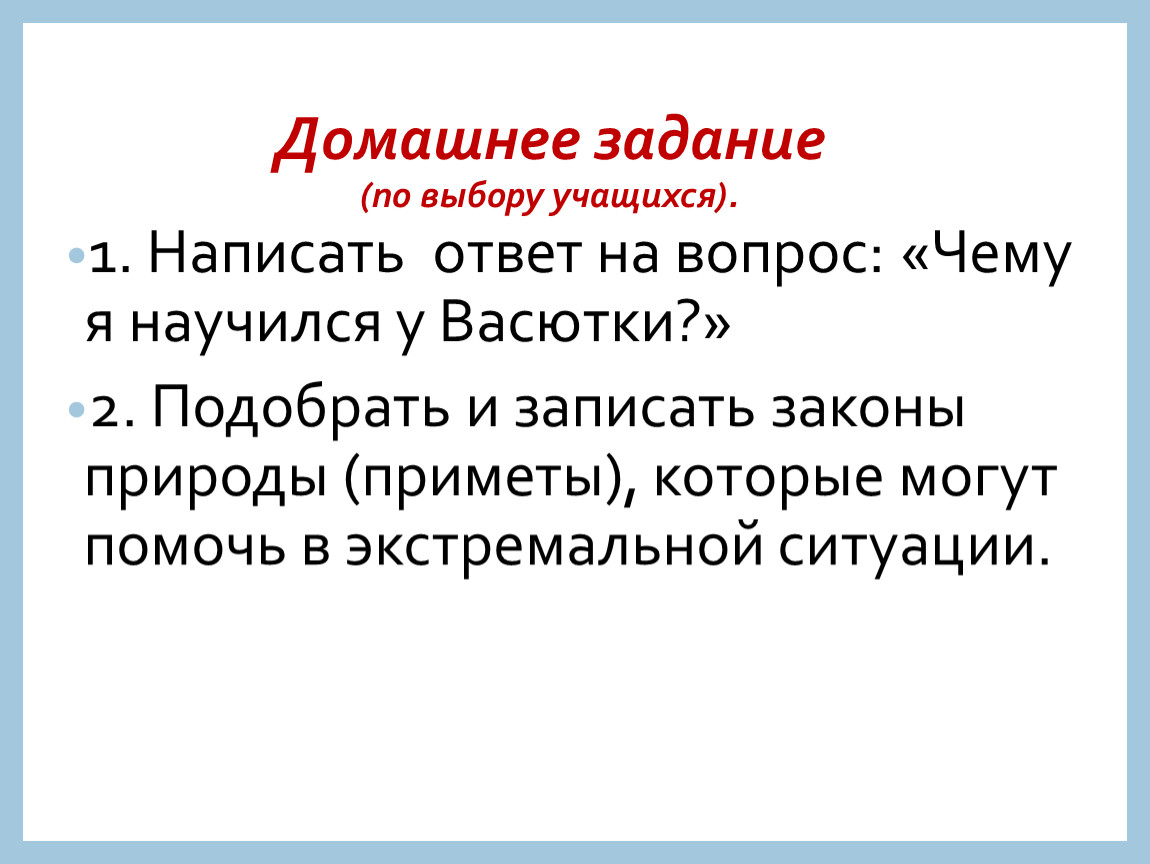 1. Написать ответ на вопрос: «Чему я научился у Васютки?»