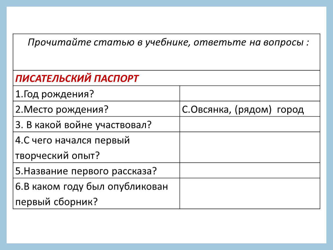 ПИСАТЕЛЬСКИЙ ПАСПОРТ | |