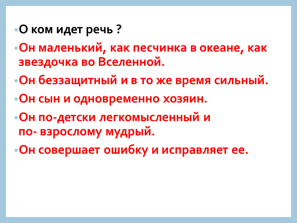 Он маленький, как песчинка в океане, как звездочка во Вселенной.