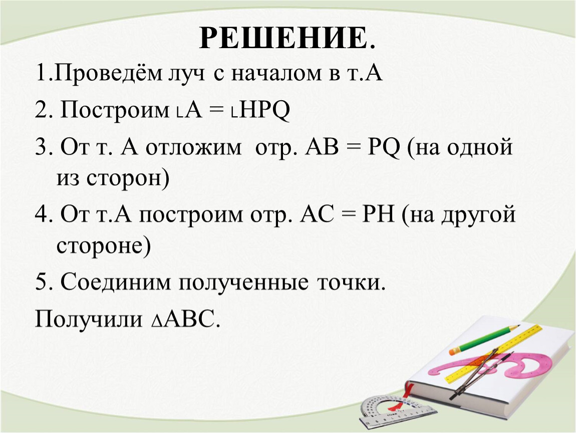 3. От т. А отложим отр. АВ = PQ (на одной из сторон)