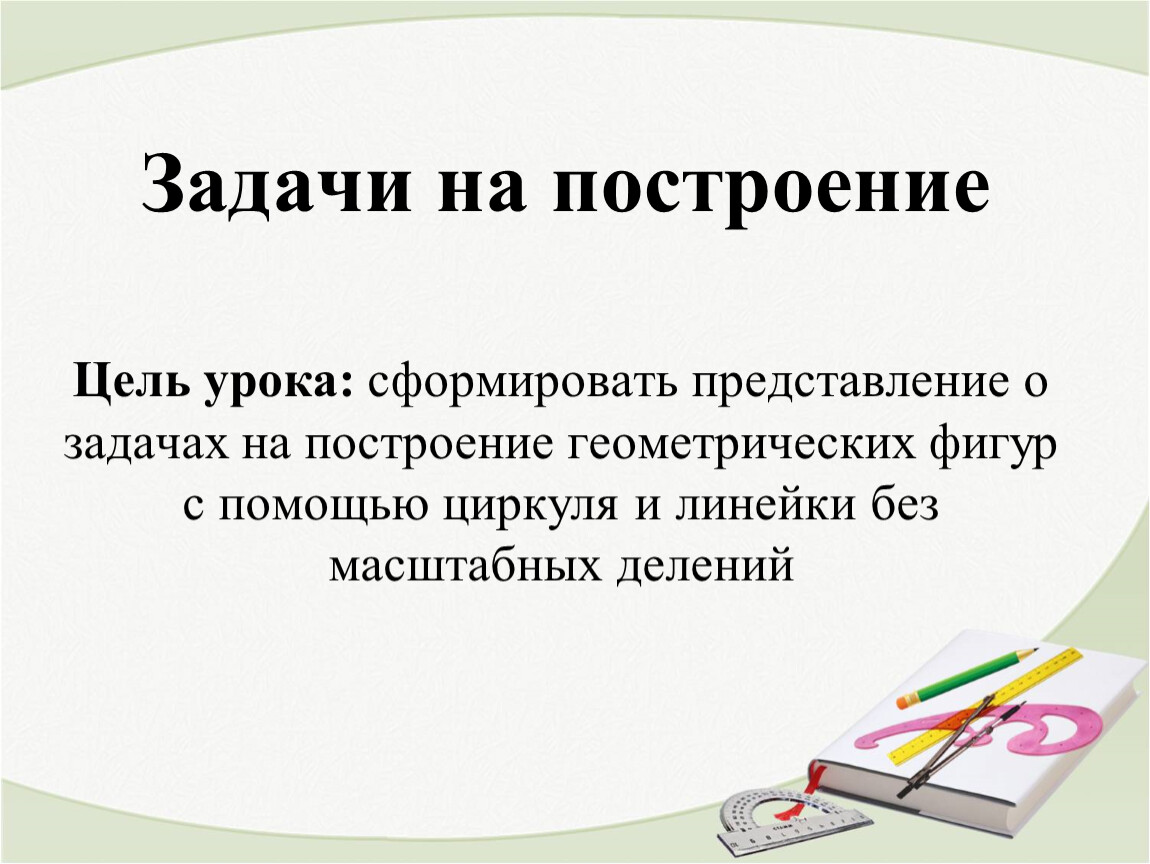 Цель урока: сформировать представление о задачах на построение геометрических фигур с помощью циркуля и линейки без масштабных делений