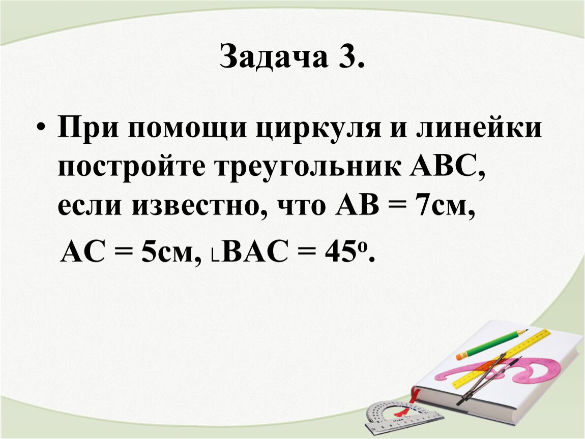 При помощи циркуля и линейки постройте треугольник АВС, если известно, что АВ = 7см,