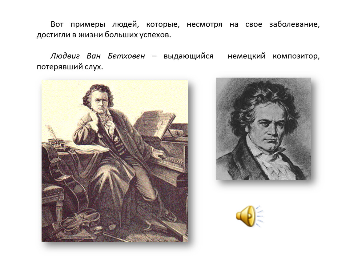 Людвиг Ван Бетховен – выдающийся немецкий композитор, потерявший слух.