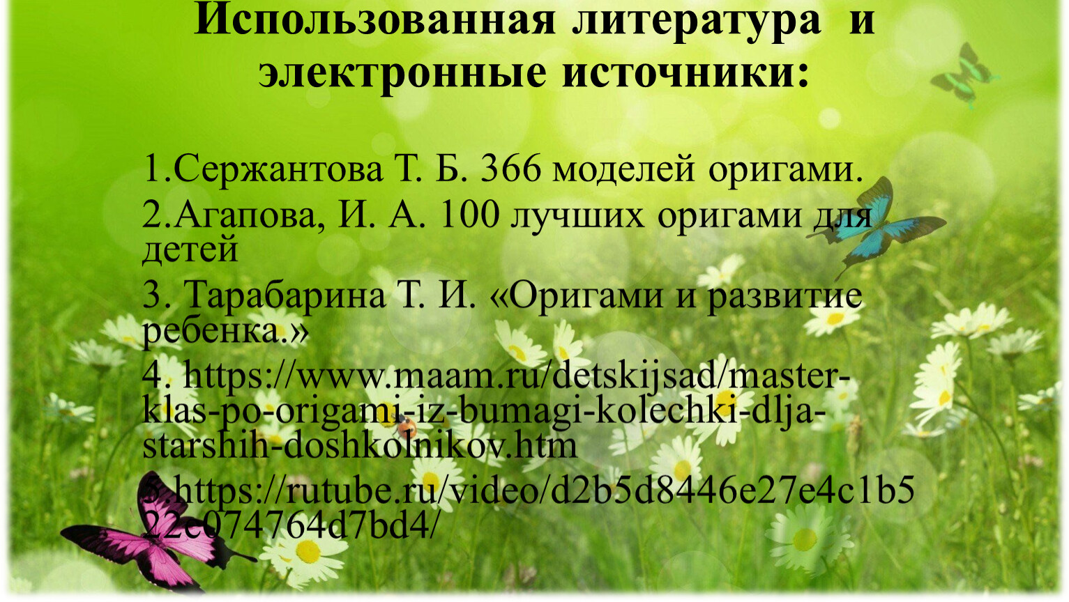 3. Тарабарина Т. И. «Оригами и развитие ребенка.»