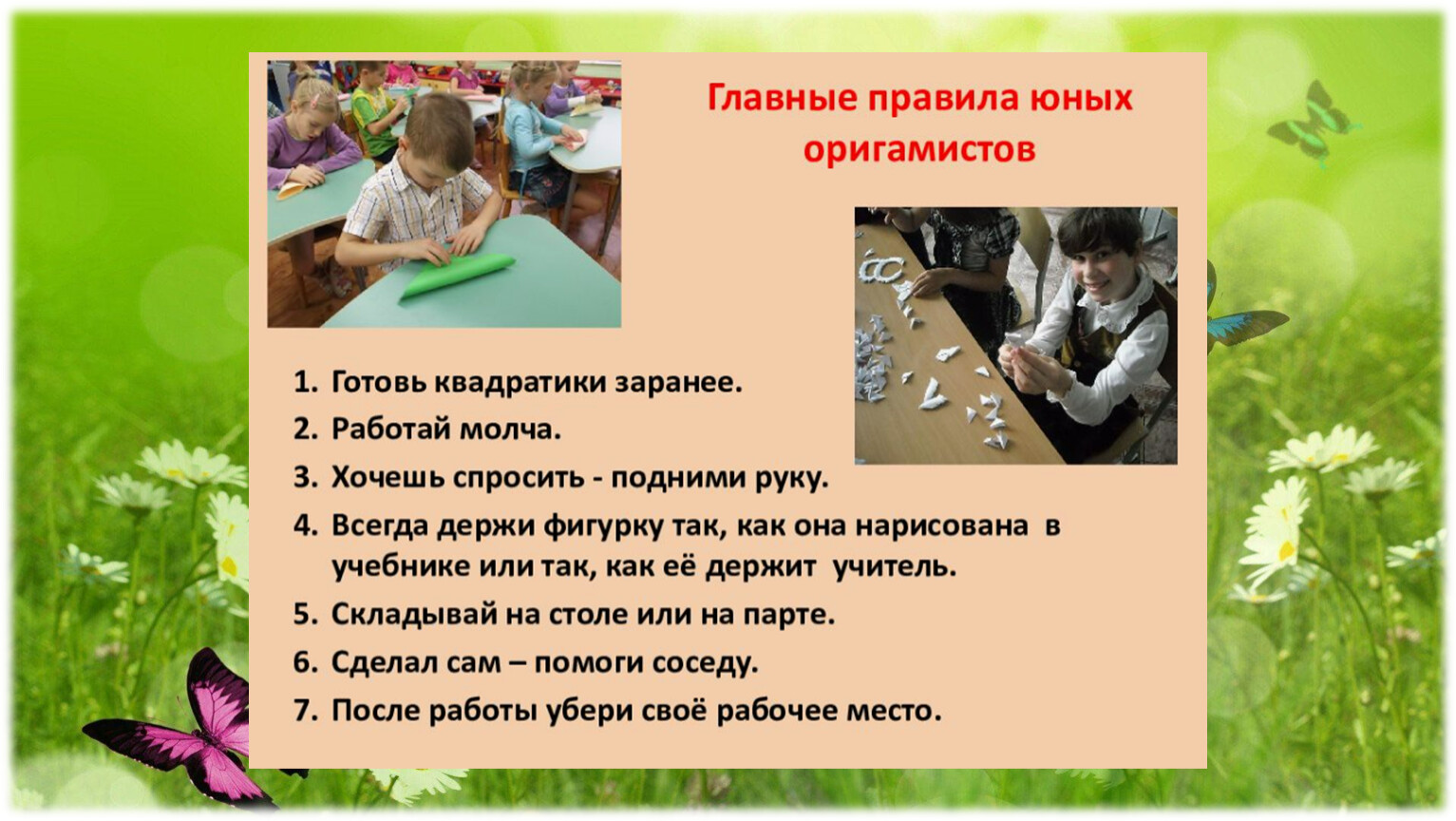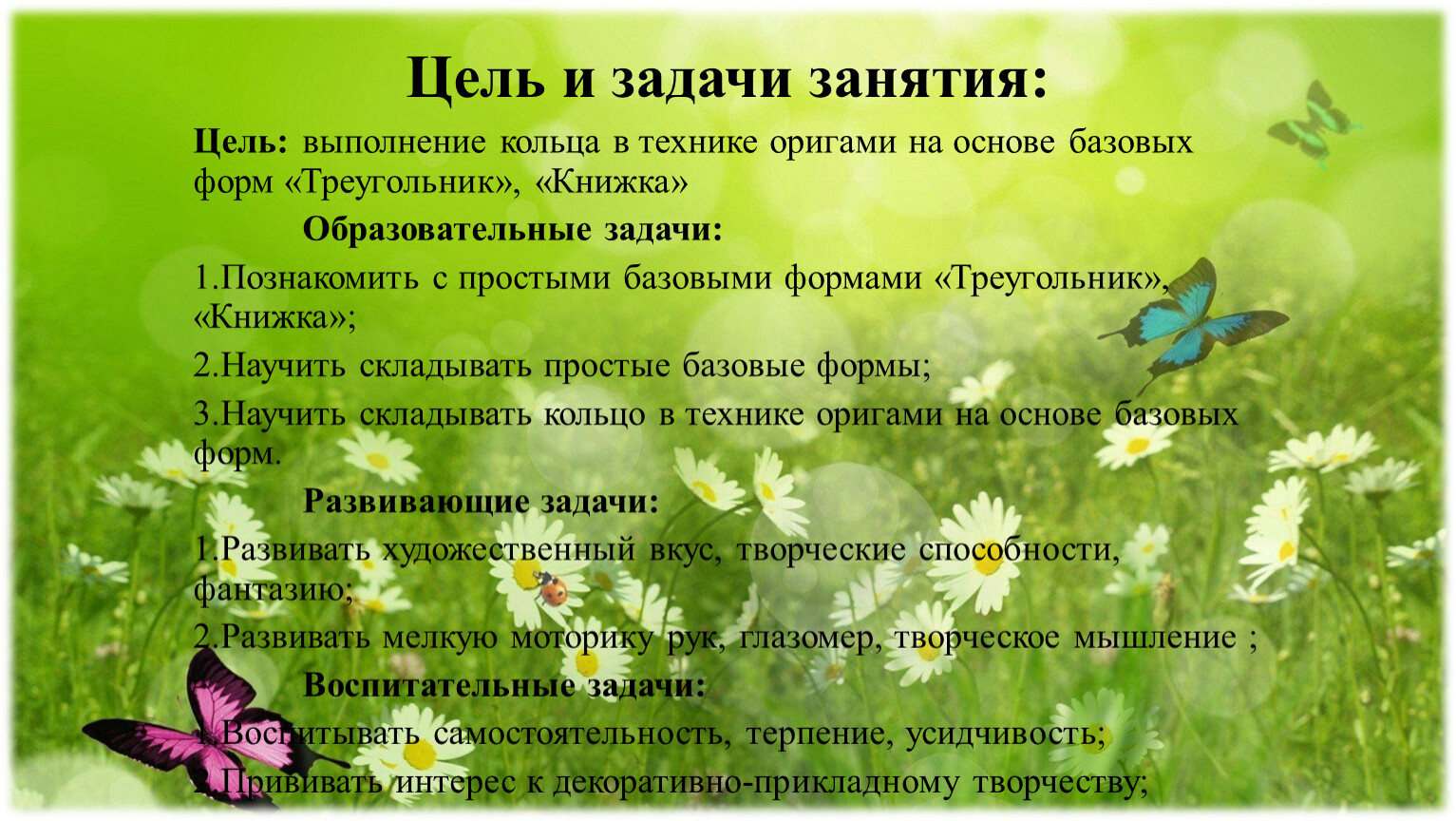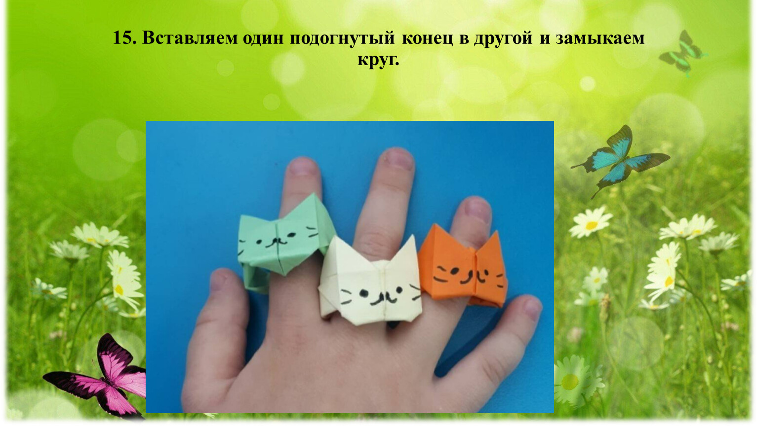 3.Научить складывать кольцо в технике оригами на основе базовых форм.