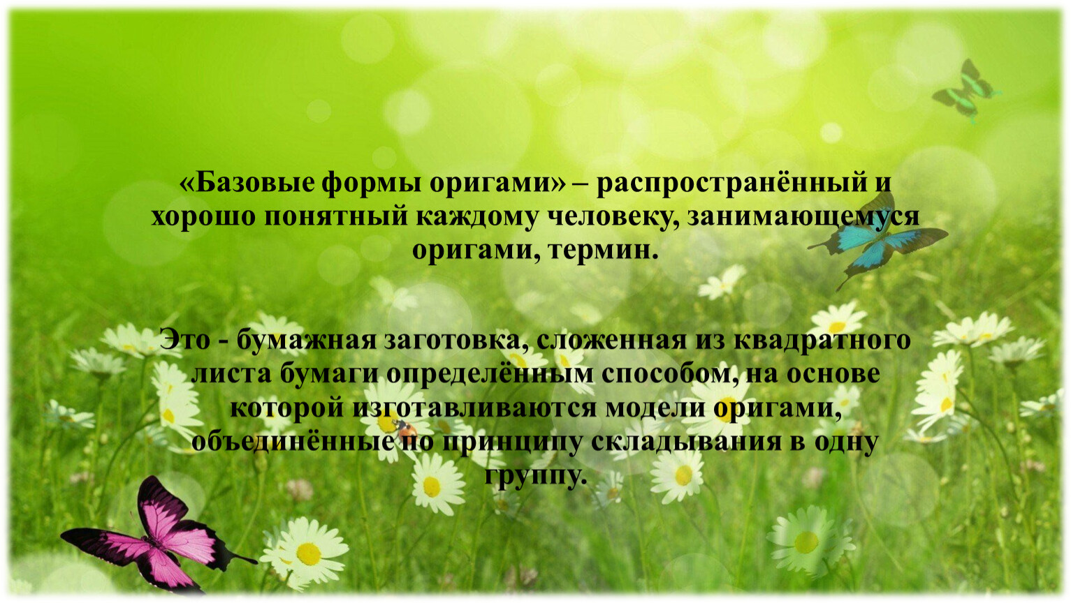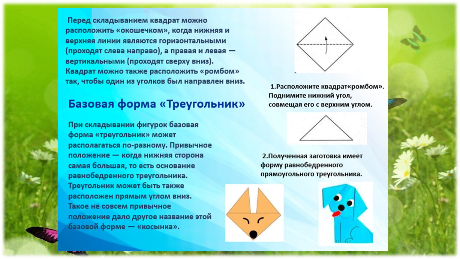 «Базовые формы оригами» – распространённый и хорошо понятный каждому человеку, занимающемуся оригами, термин.