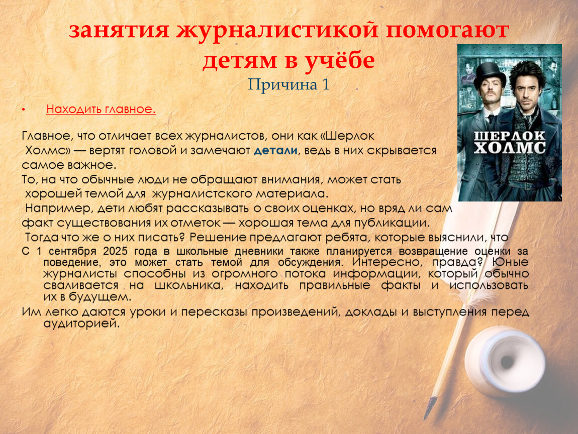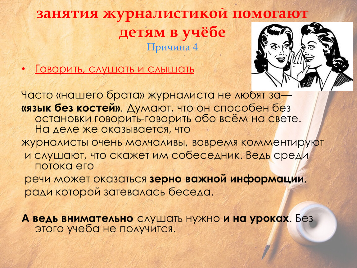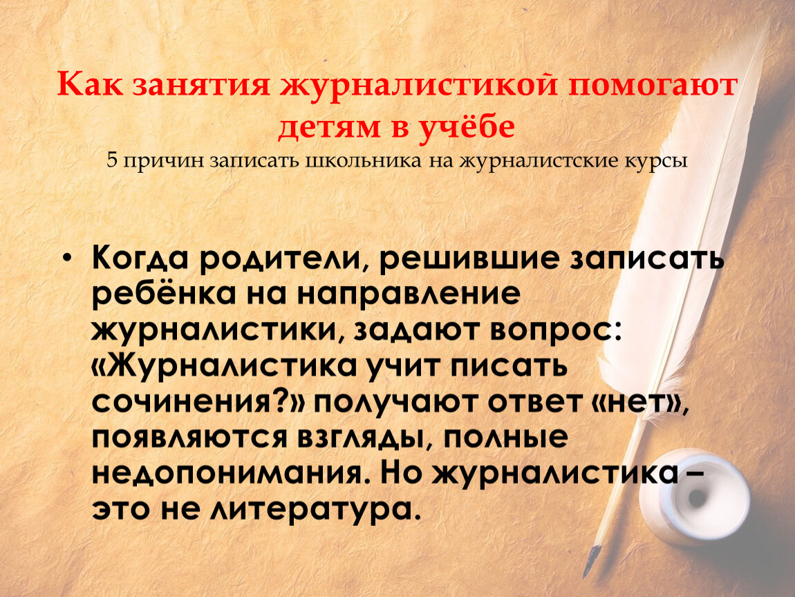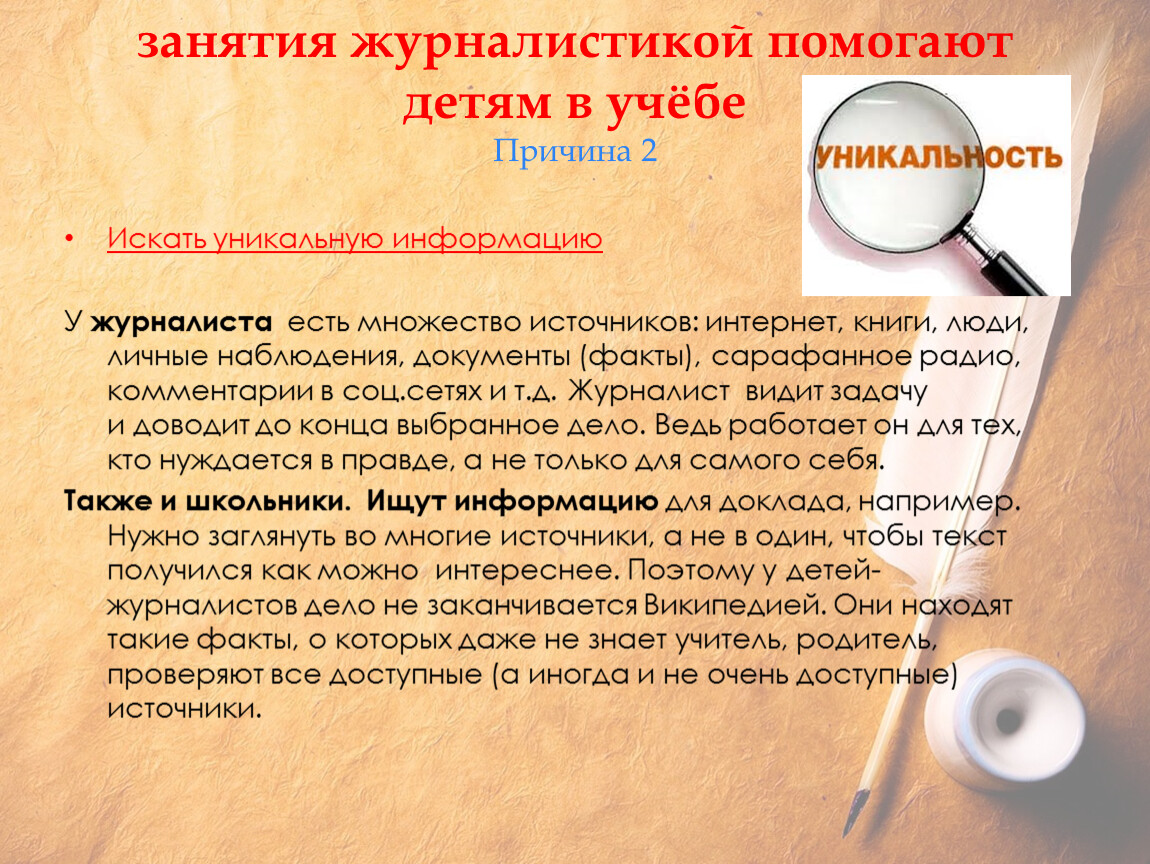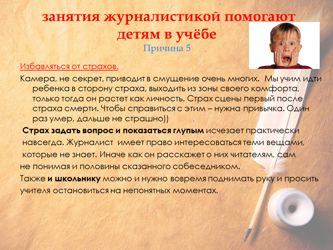 занятия журналистикой помогают детям в учёбеПричина 1