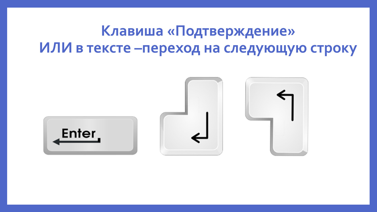 Клавиша «Подтверждение»ИЛИ в тексте –переход на следующую строку