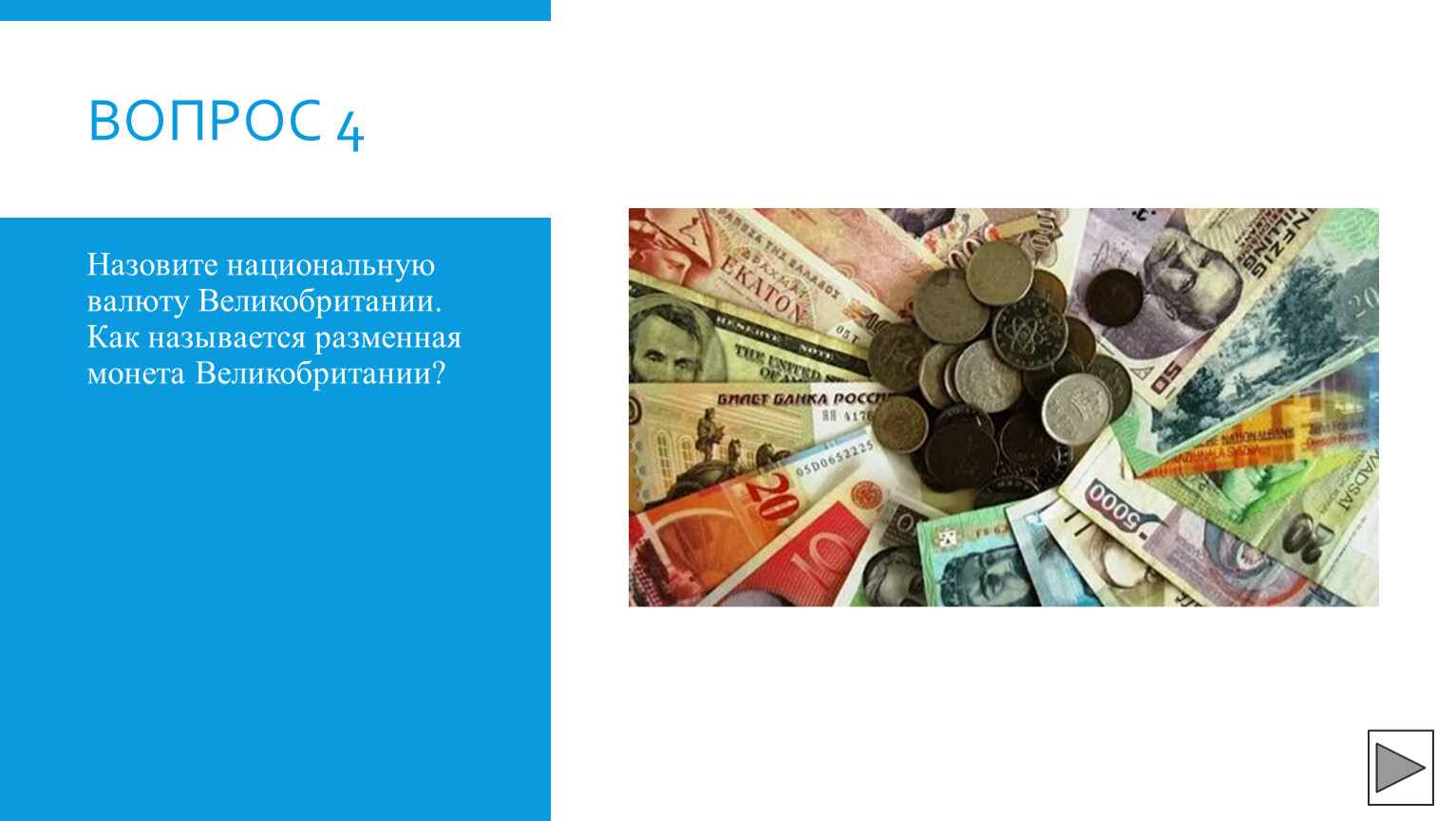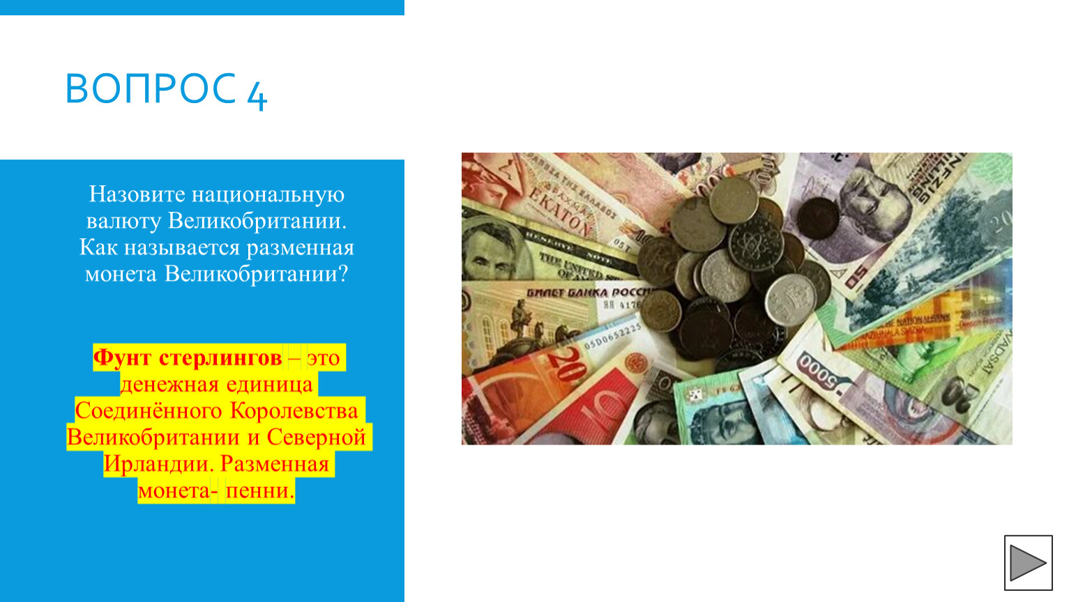 Назовите национальную валюту Великобритании. Как называется разменная монета Великобритании?