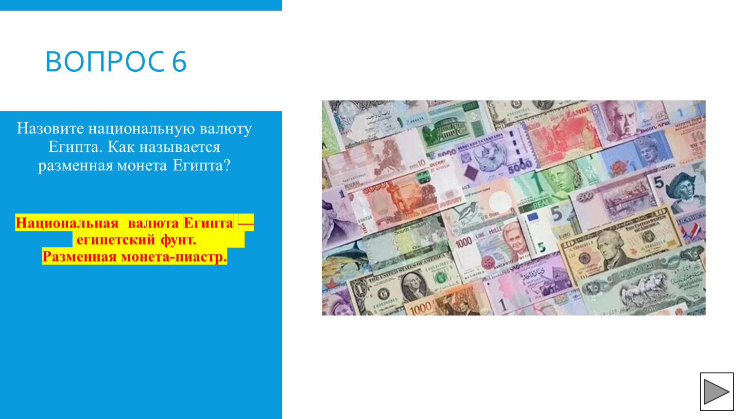 Назовите национальную валюту Египта. Как называется разменная монета Египта?