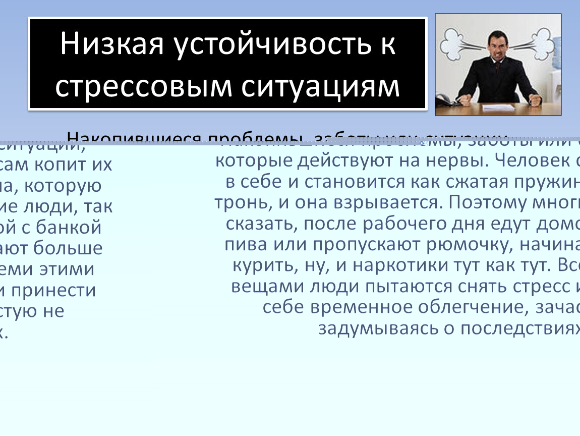 Низкая устойчивость к стрессовым ситуациям