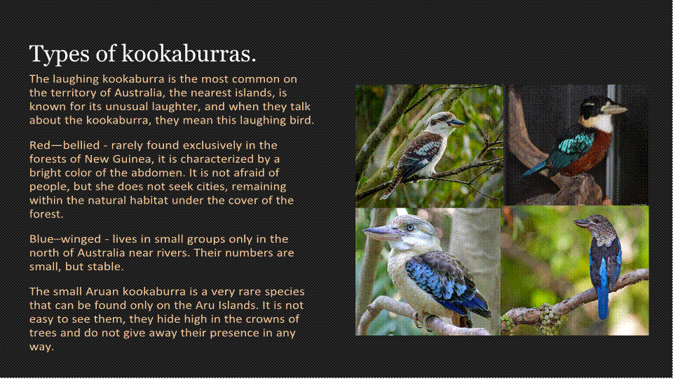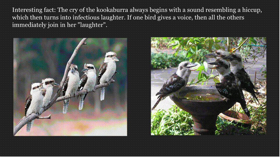 applies to the kookaburra, but these birds are