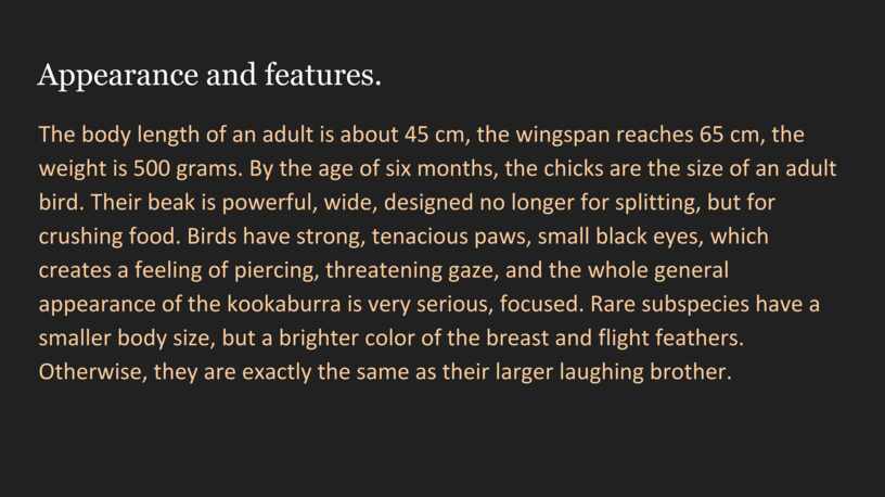piercing, threatening gaze, and the whole general appearance of the kookaburra