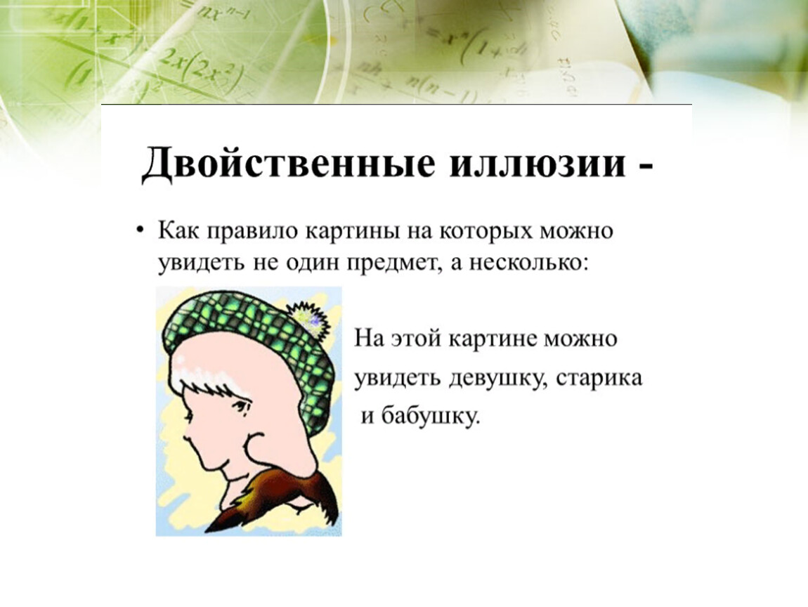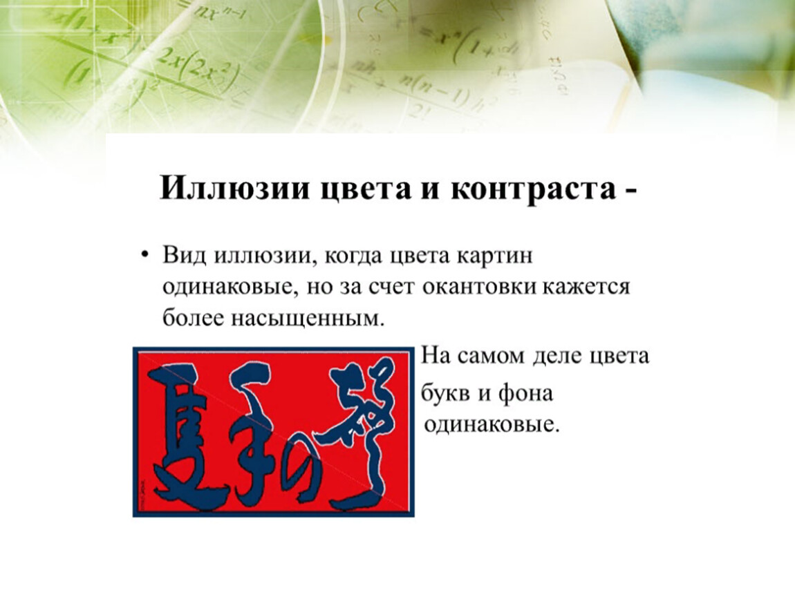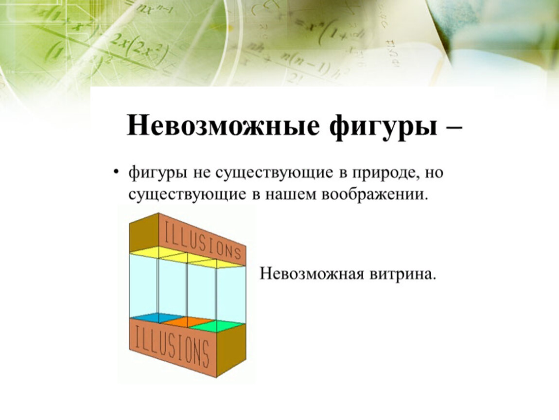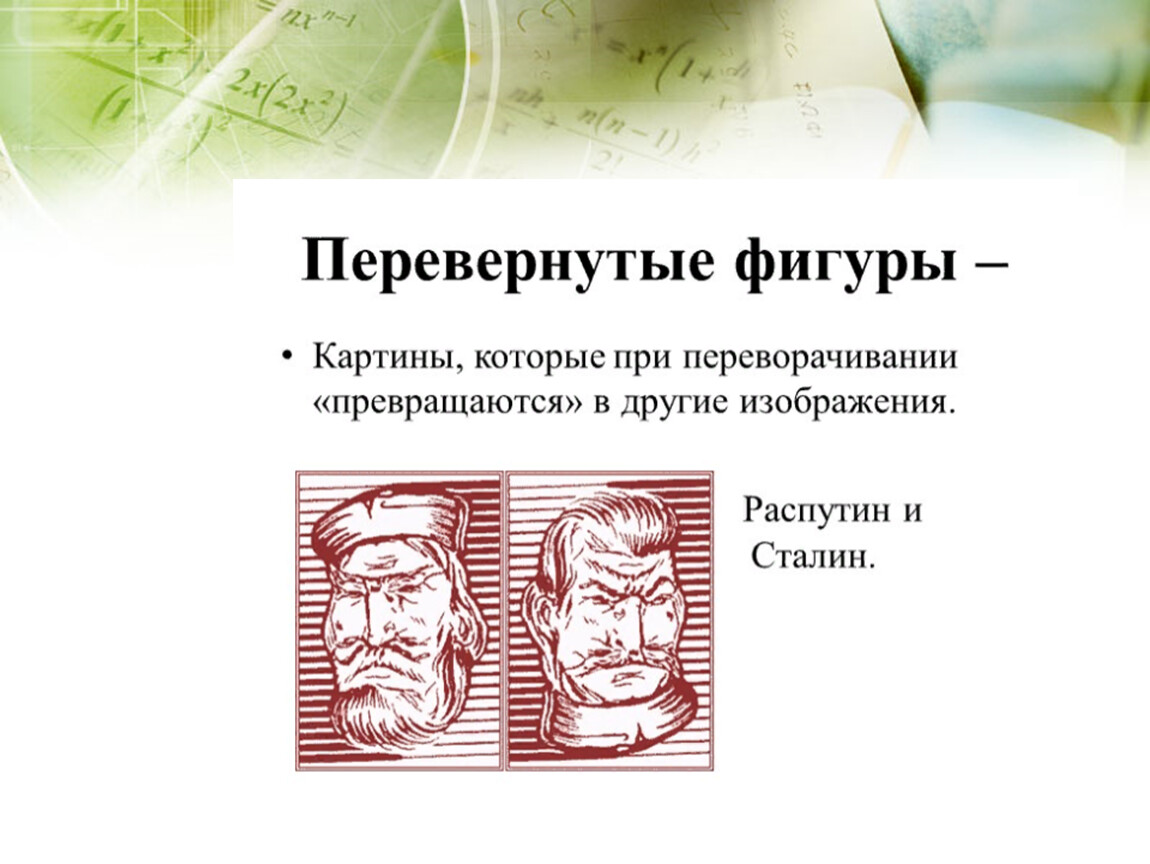 Они выражаются в том, что видимые метрические отношения элементов фигур не совпадают с фактическими.