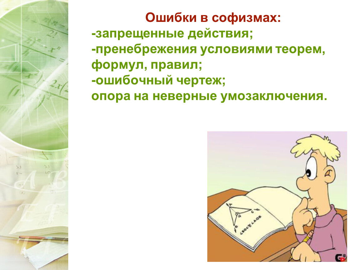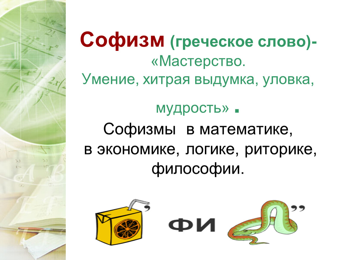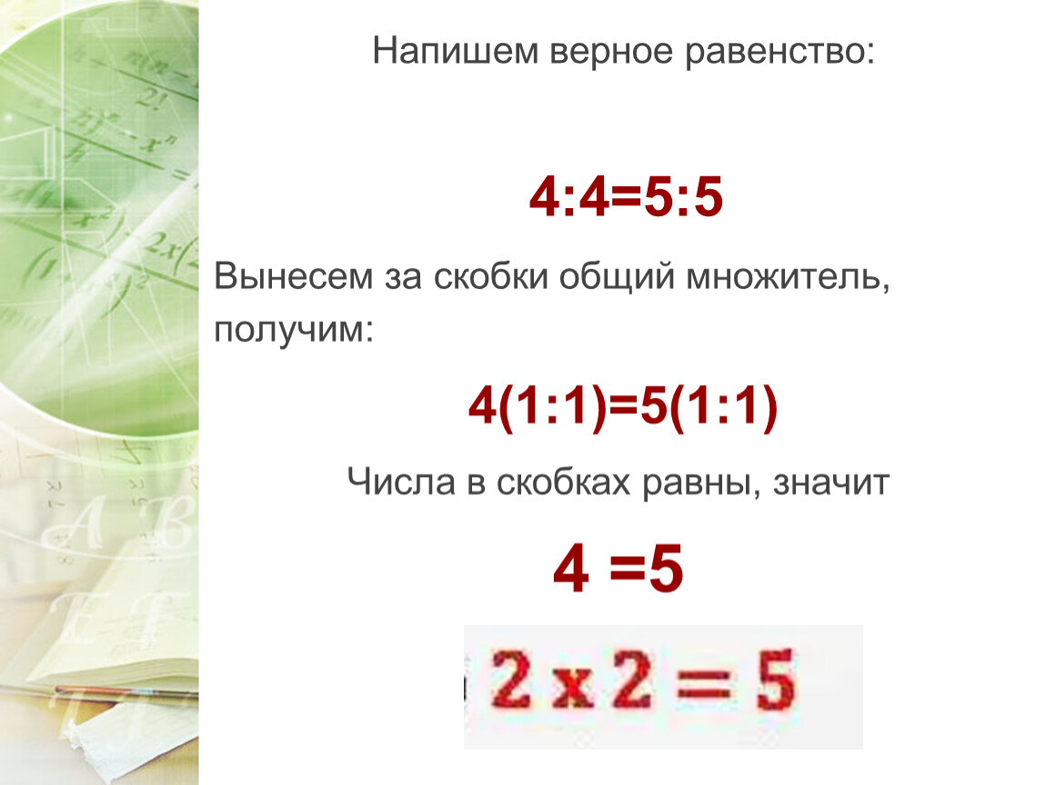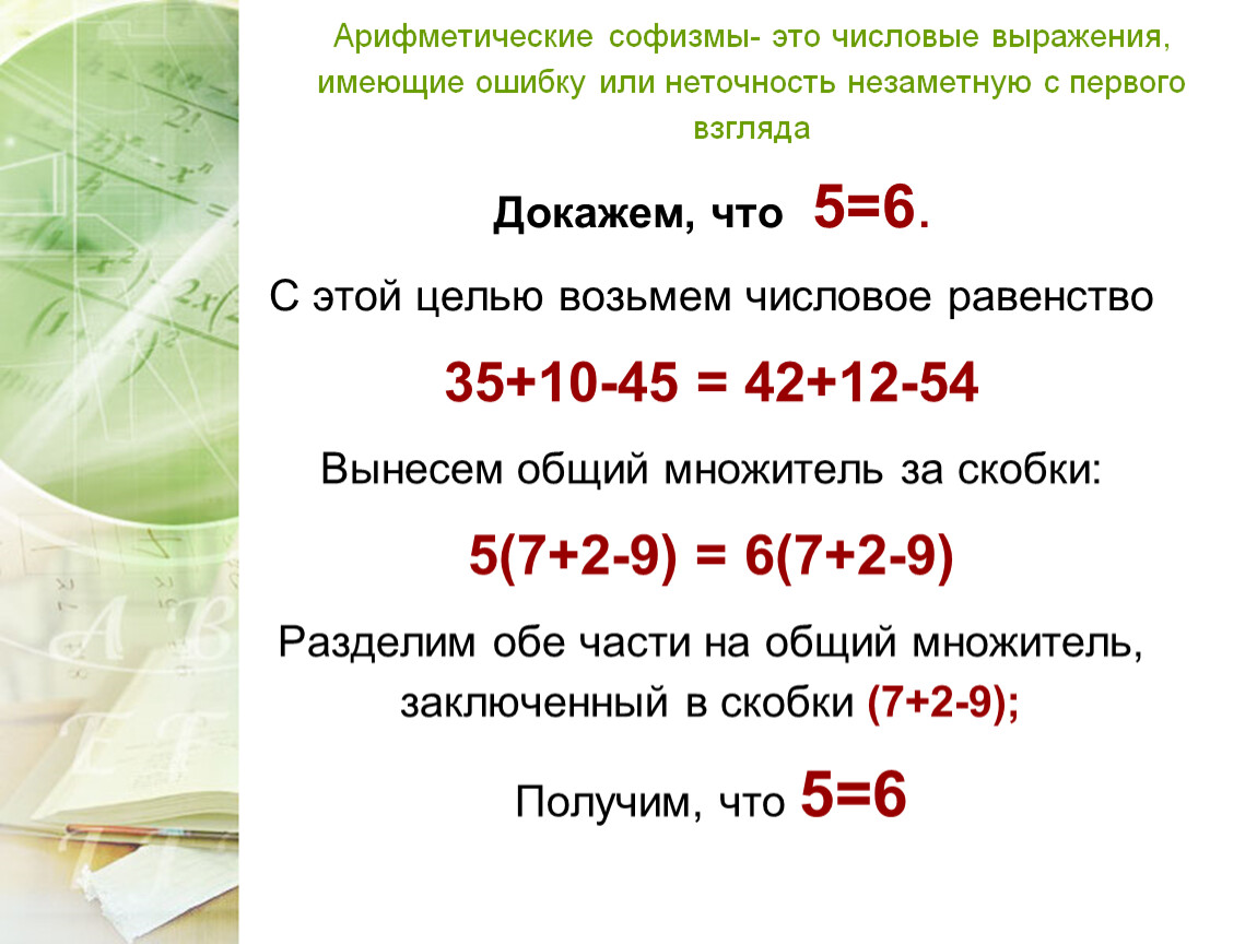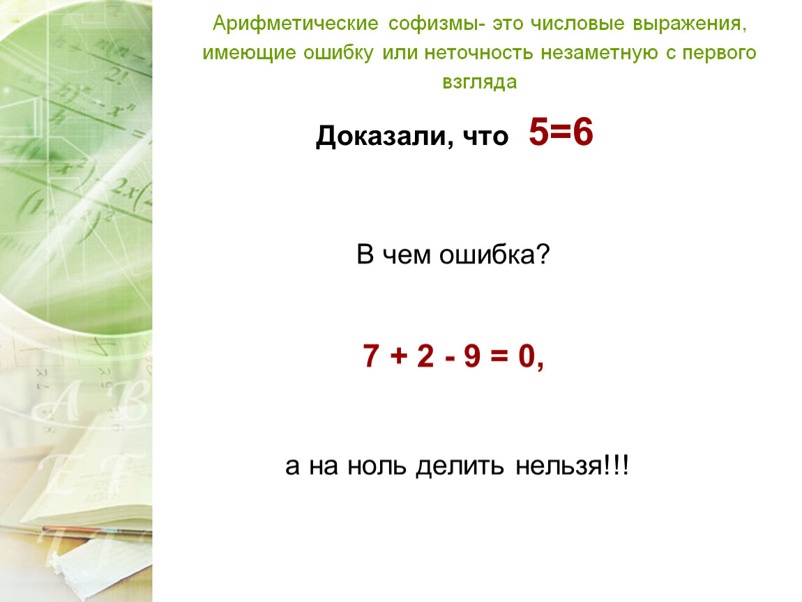 Арифметические софизмы- это числовые выражения, имеющие ошибку или неточность незаметную с первого взгляда