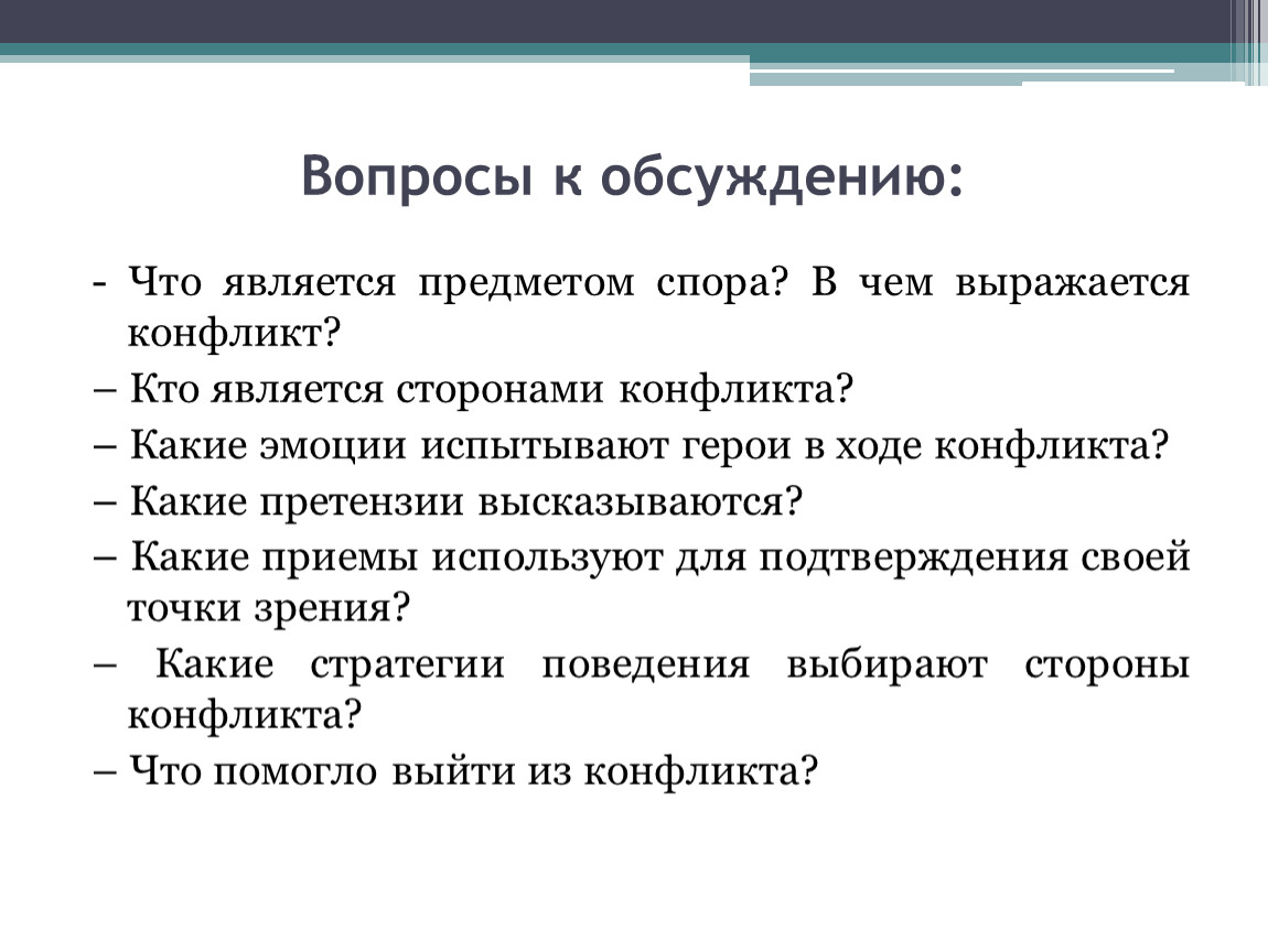 Плюсы: данный метод позволяет достаточно сильно уменьшить временные затраты при разрешении конфликтной ситуации; позволяет участникам конфликта высказаться и объяснить свою точку зрения, услышать и понять противоположное мнение.