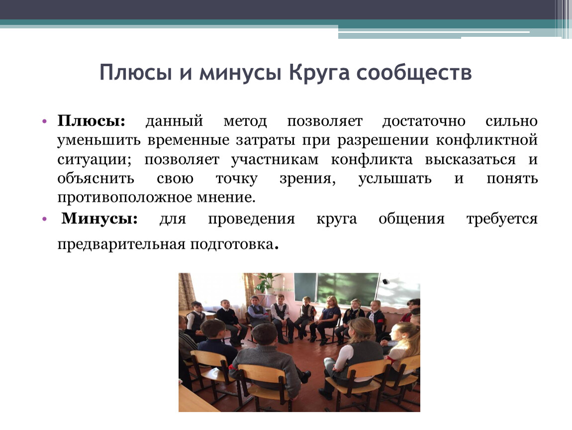Минусы: для проведения круга общения требуется предварительная подготовка.