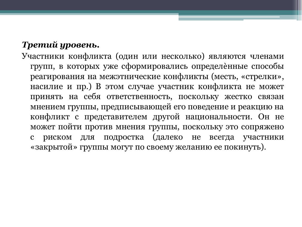 Уровни «нагруженности» конфликта межэтническими (межнациональными) контекстами