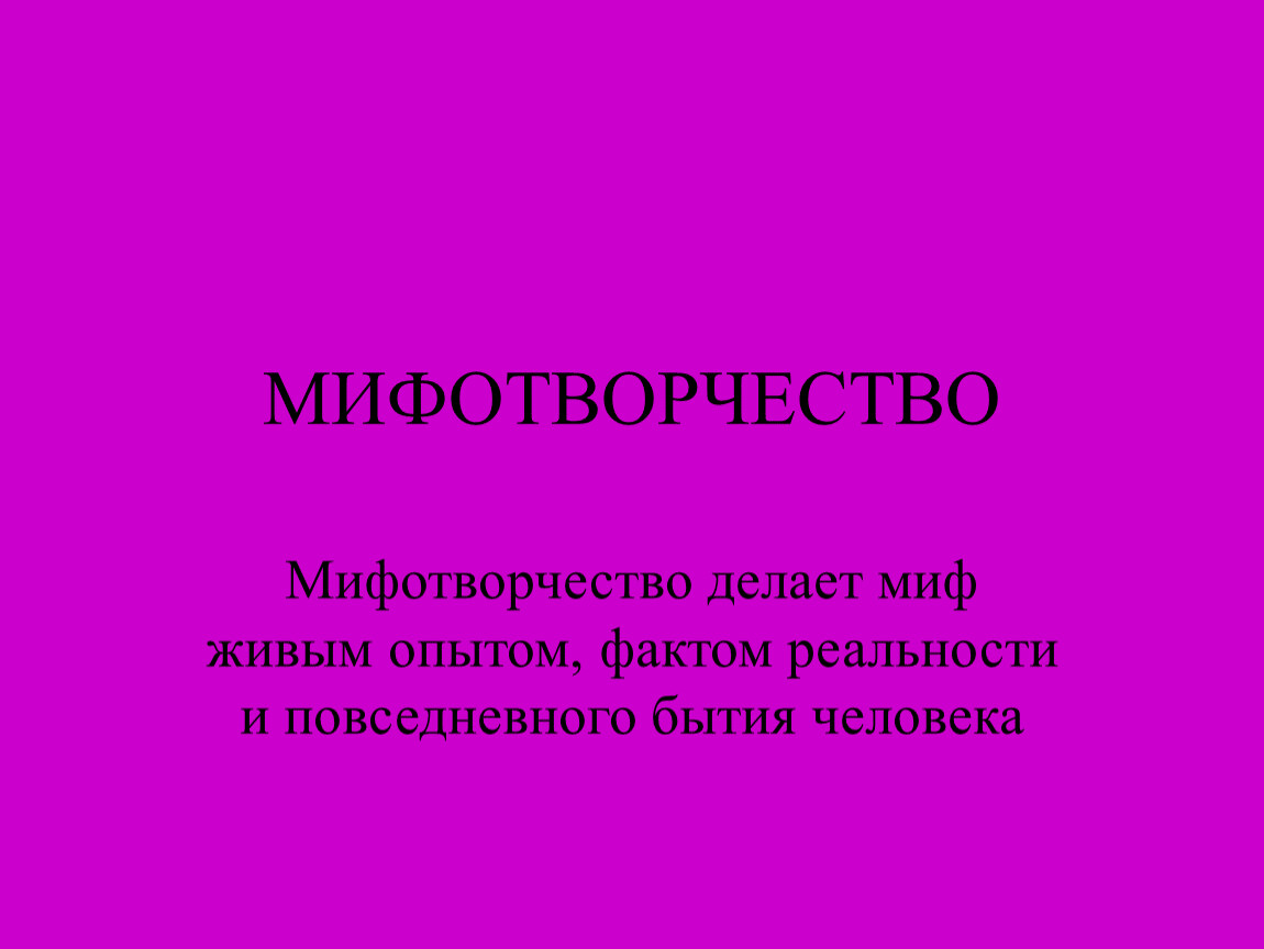 Мифотворчество делает миф живым опытом, фактом реальности и повседневного бытия человека
