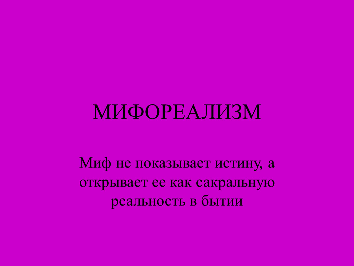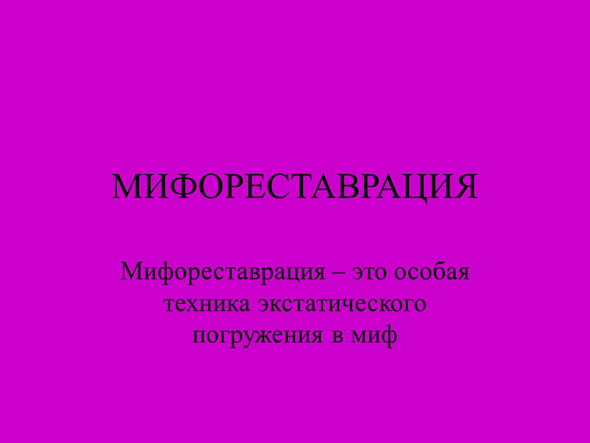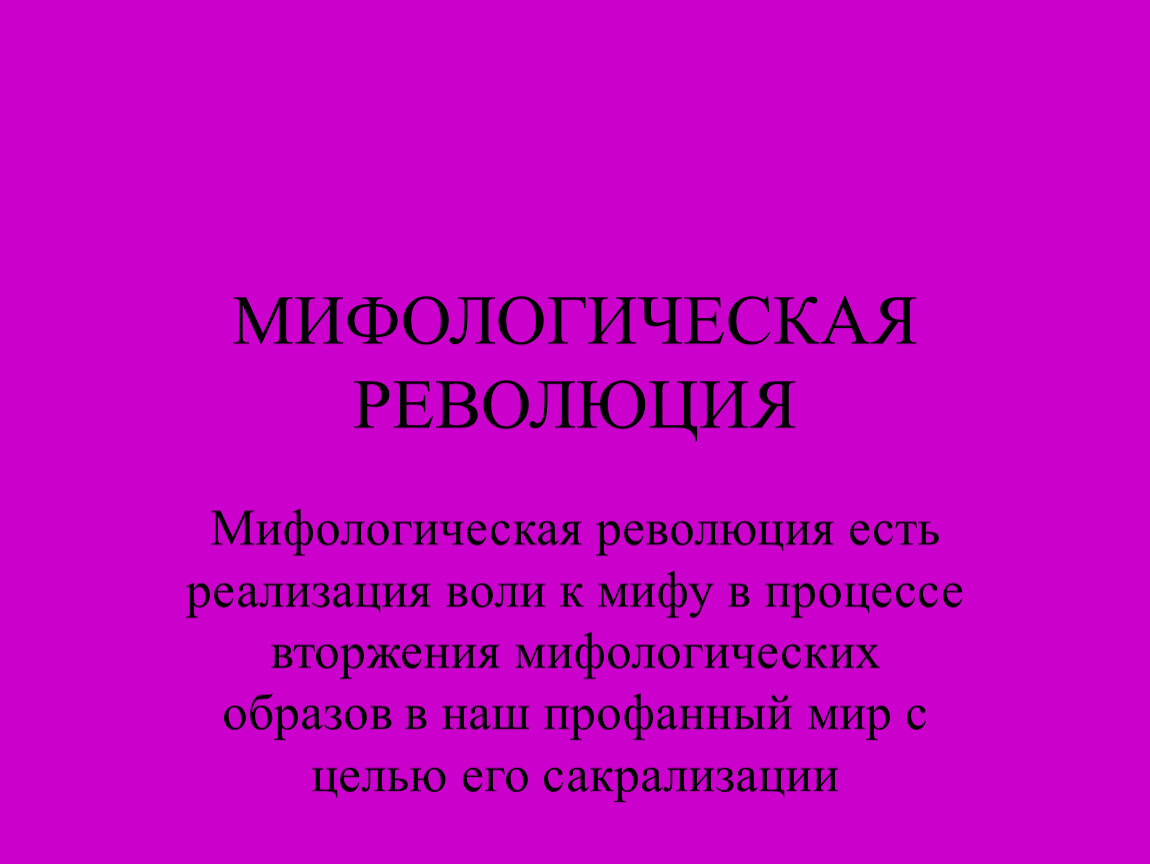 Мифологическая революция есть реализация воли к мифу в процессе вторжения мифологических образов в наш профанный мир с целью его сакрализации