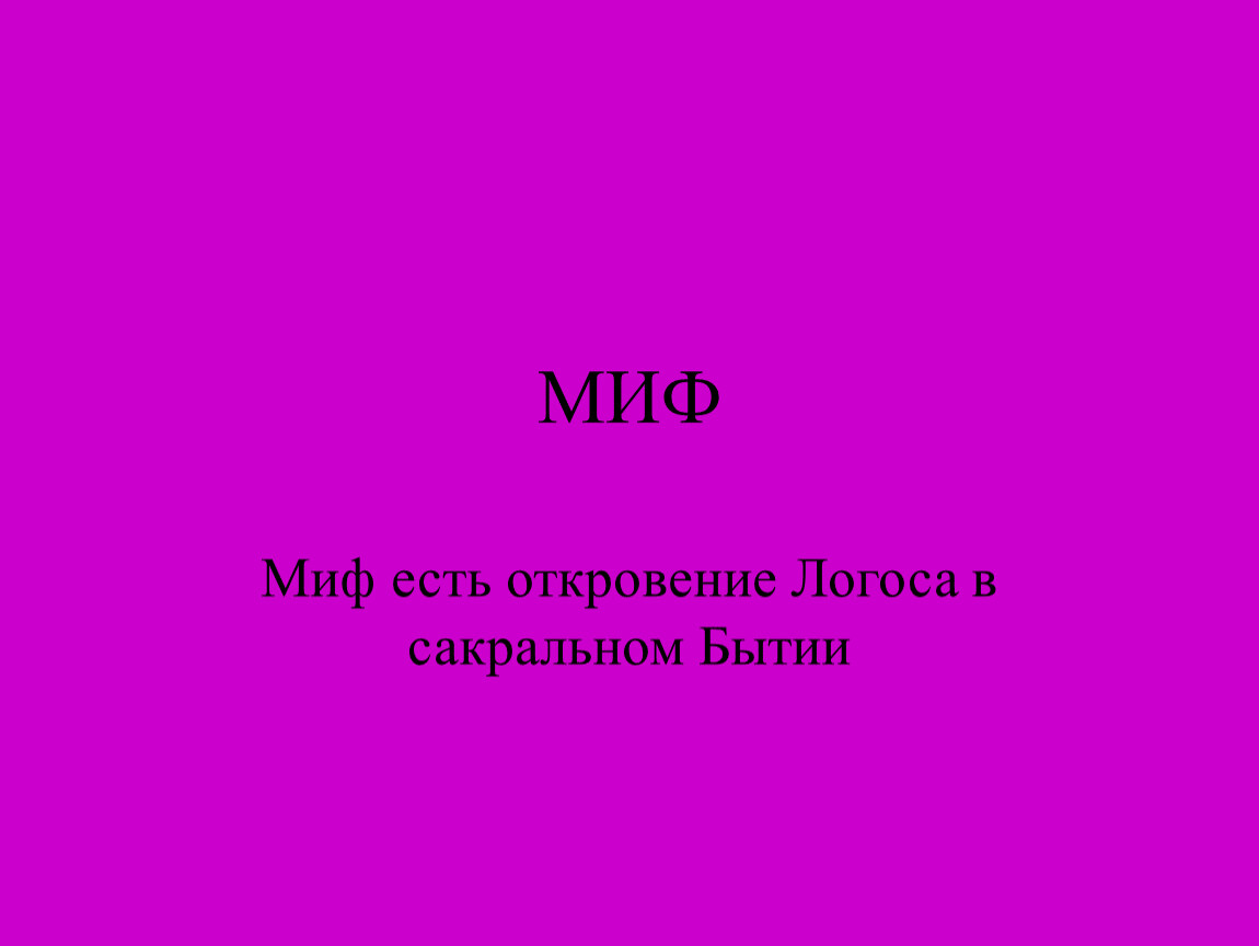 Сакральное есть реализовавшаяся воля к мифу; оно представляется как замкнутое в себе Сверх-Бытие