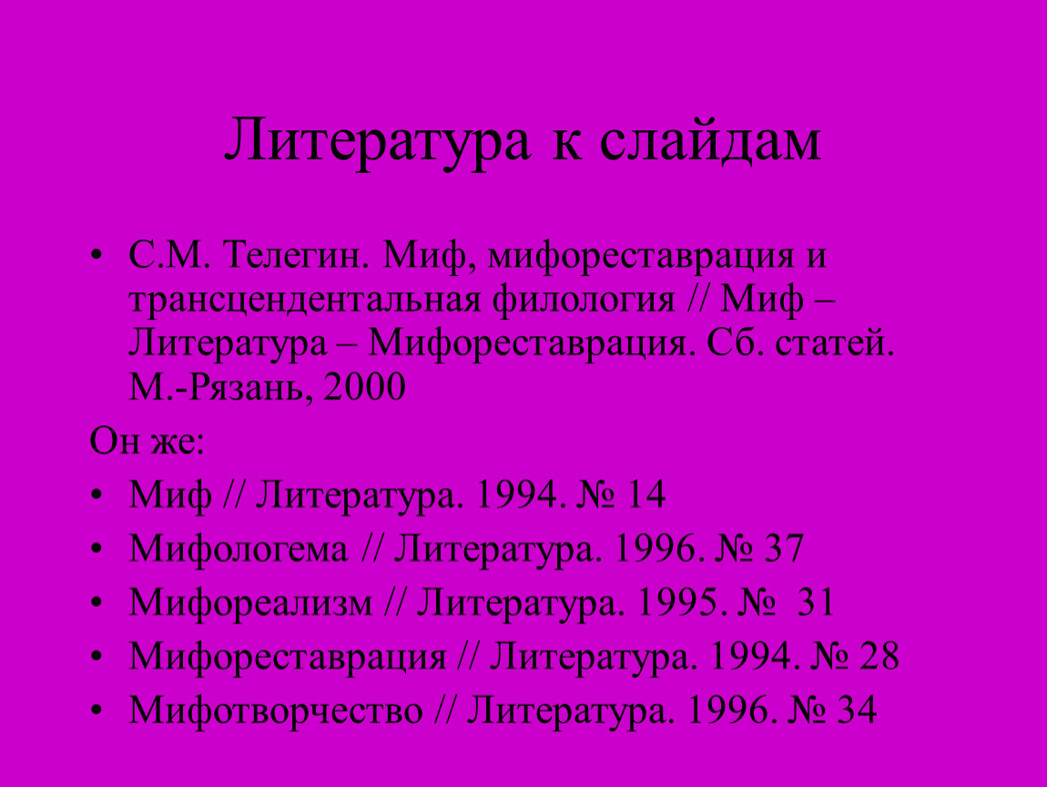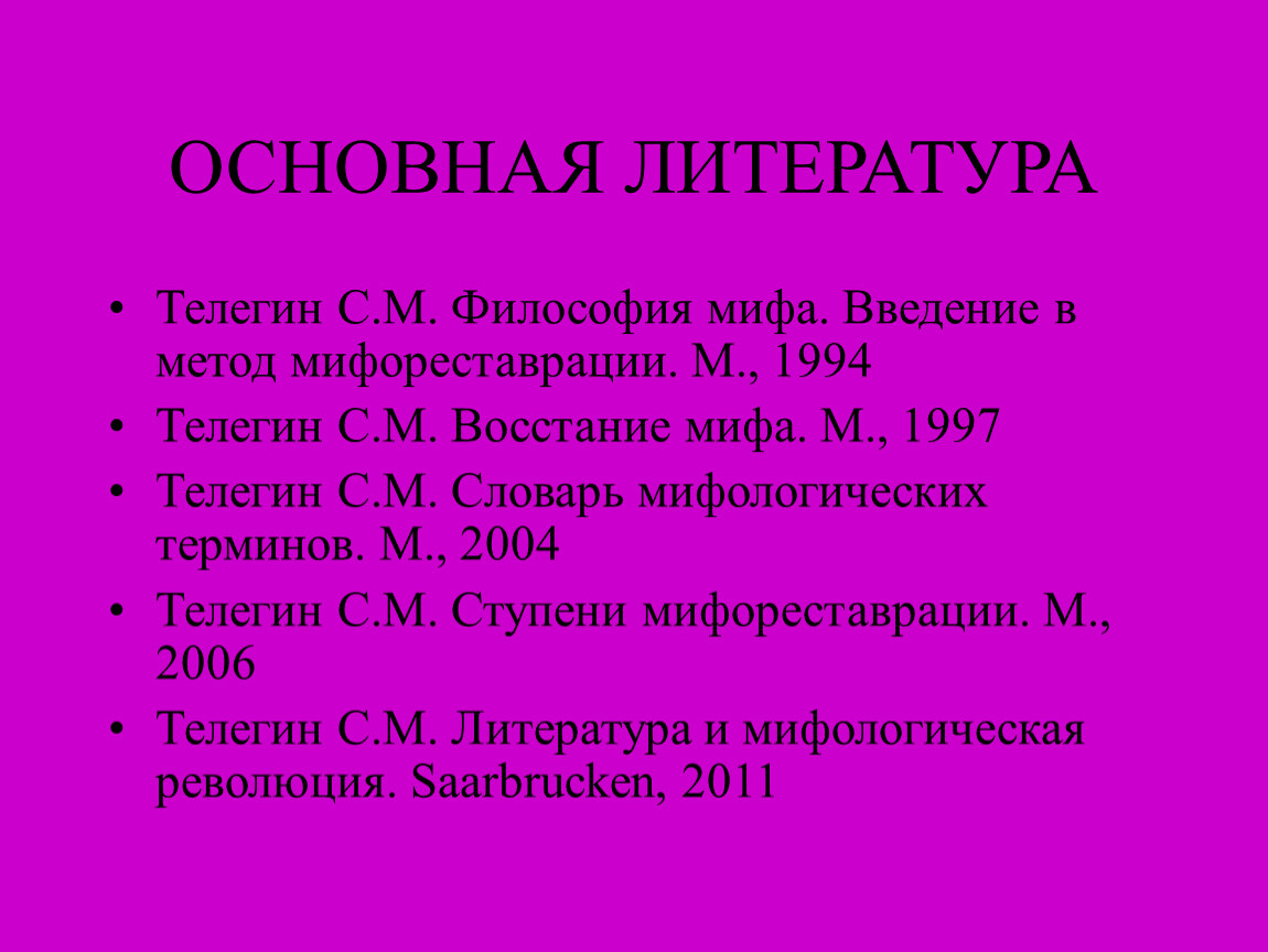 С.М. Телегин. Миф, мифореставрация и трансцендентальная филология // Миф – Литература – Мифореставрация. Сб. статей. М.-Рязань, 2000