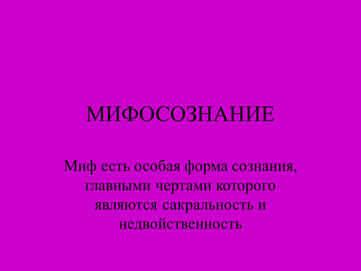 Миф есть особая форма сознания, главными чертами которого являются сакральность и недвойственность