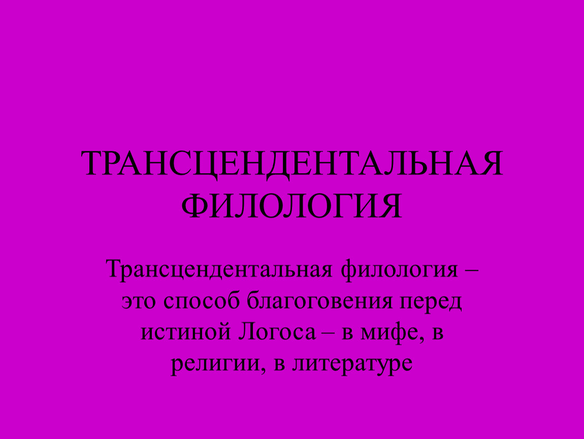 Трансцендентальная филология – это способ благоговения перед истиной Логоса – в мифе, в религии, в литературе
