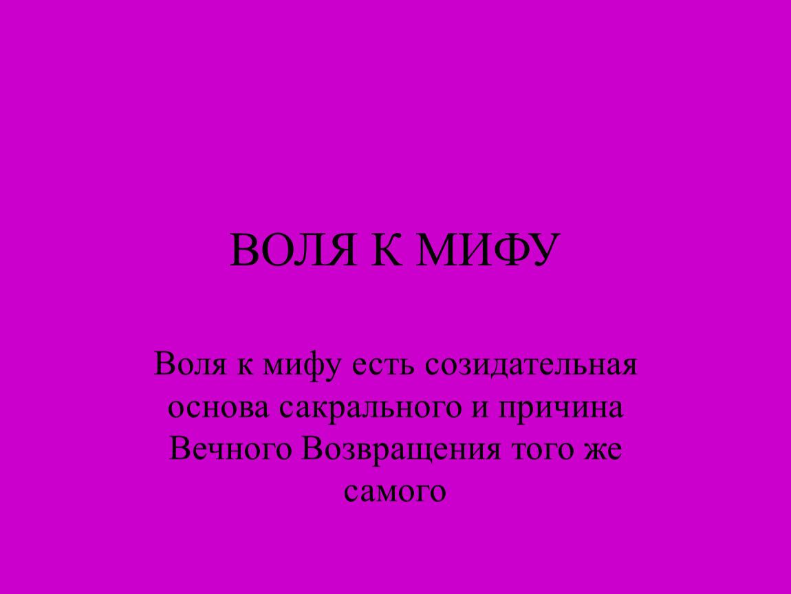Воля к мифу есть созидательная основа сакрального и причина Вечного Возвращения того же самого