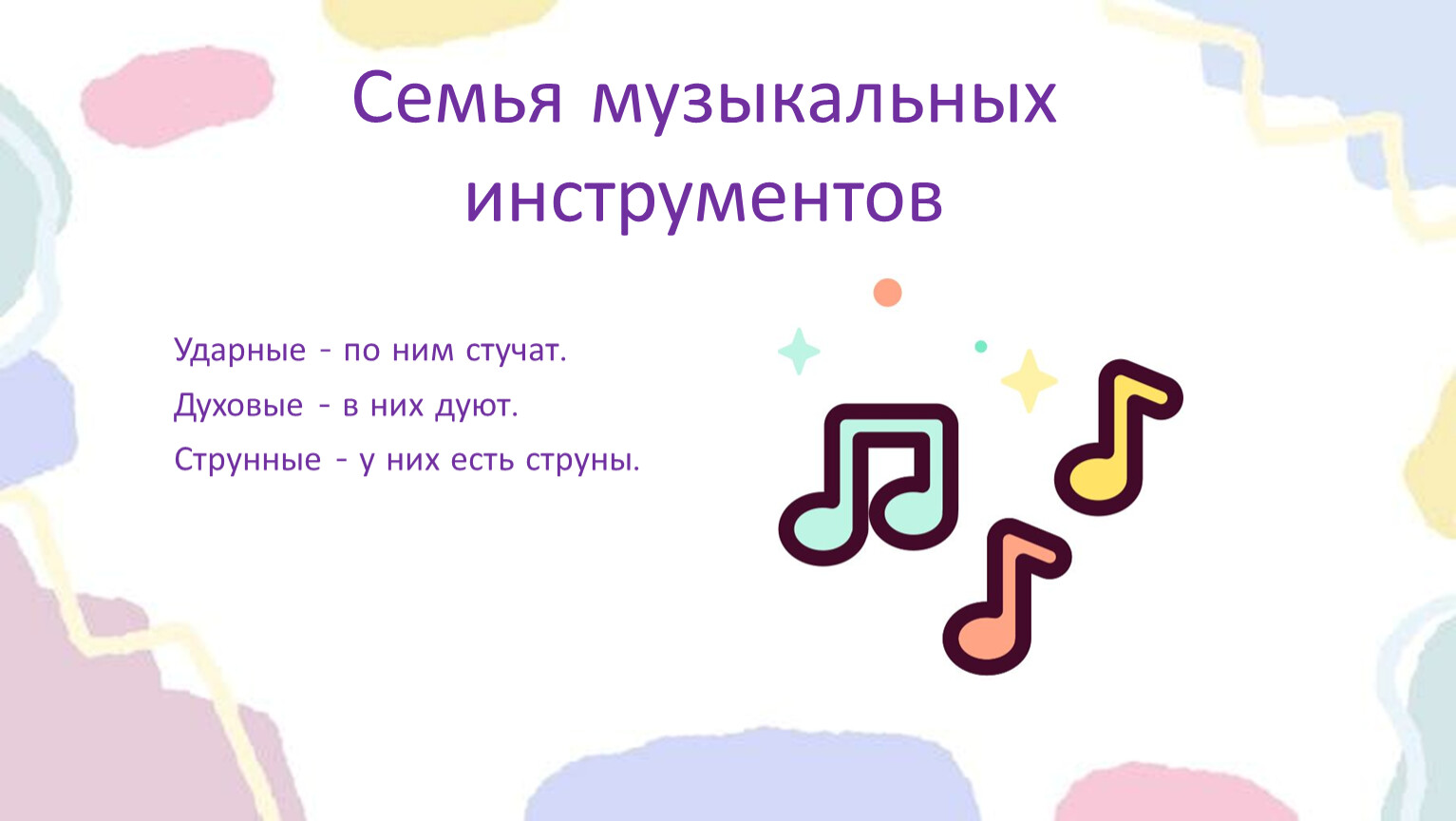 Музыка - это веселые звуки, которые дружат.