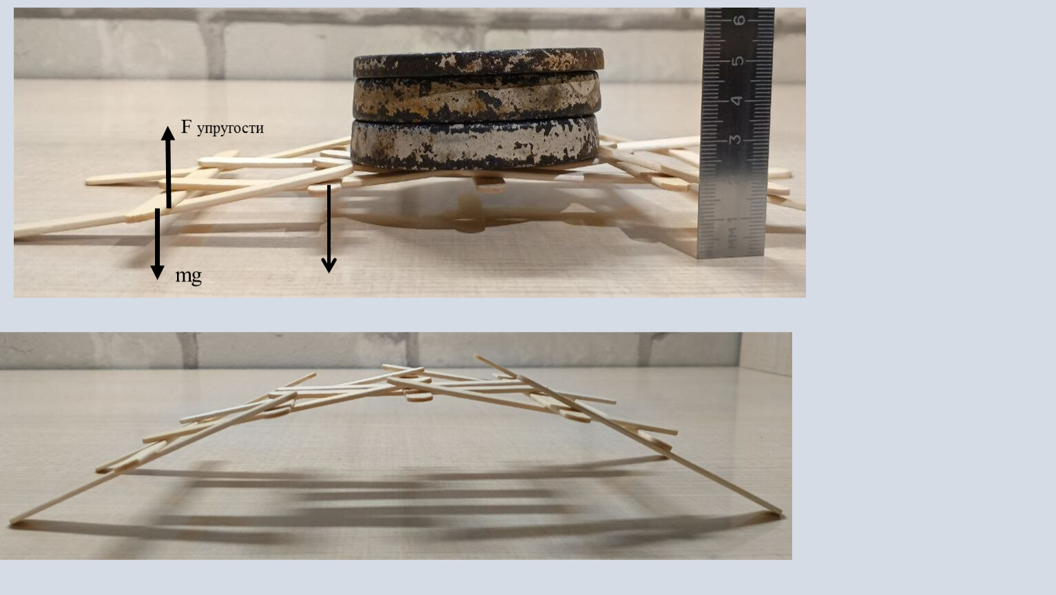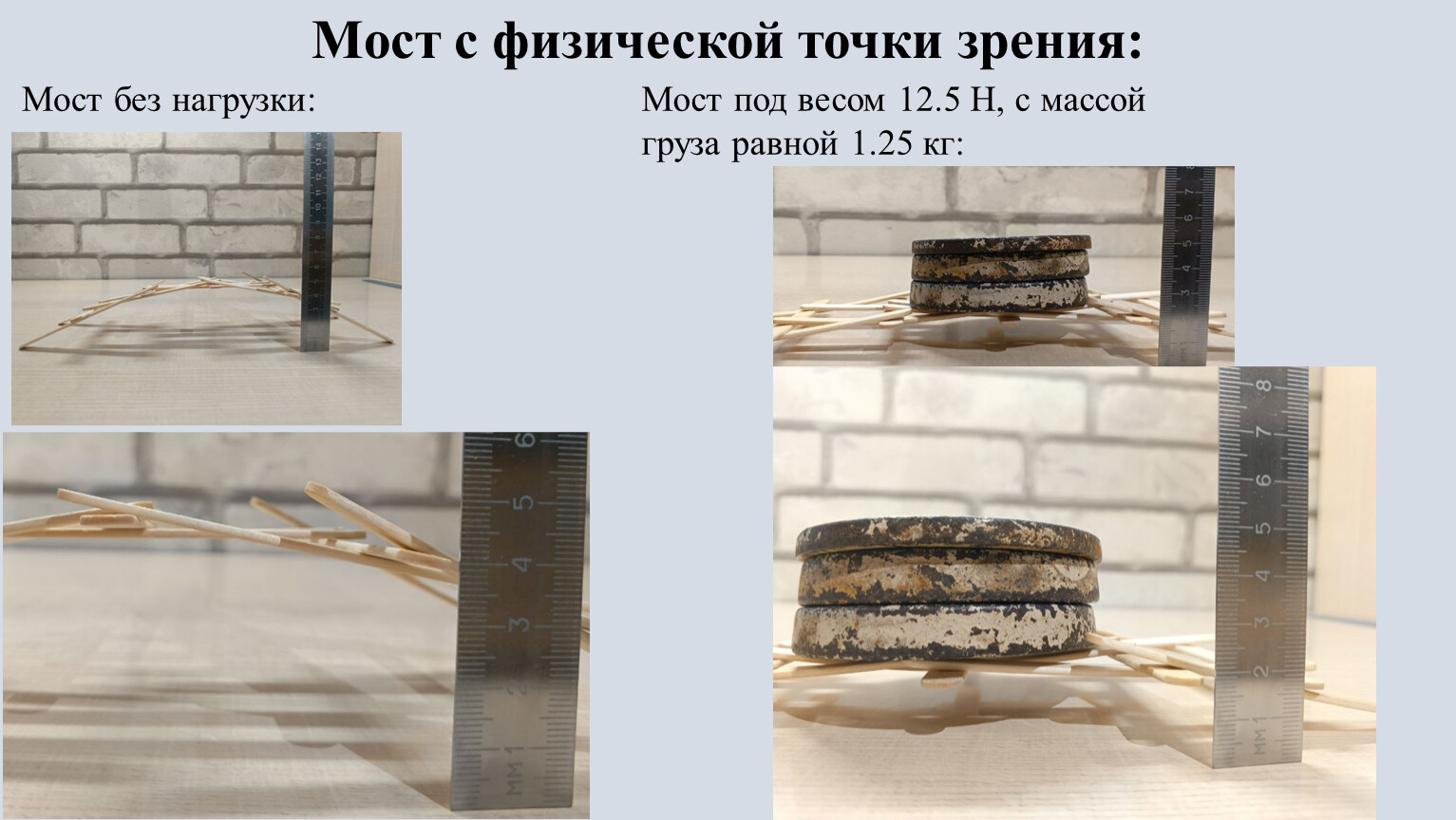 Мост под весом 12.5 Н, с массой груза равной 1.25 кг:
