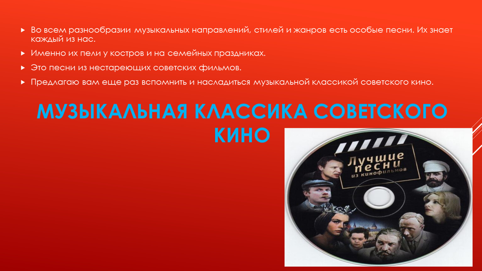 Предлагаю вам еще раз вспомнить и насладиться музыкальной классикой советского кино.