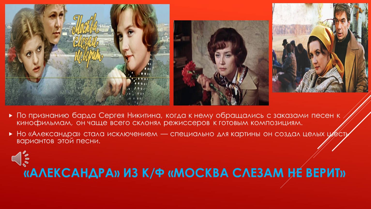 Но «Александра» стала исключением — специально для картины он создал целых шесть вариантов этой песни.