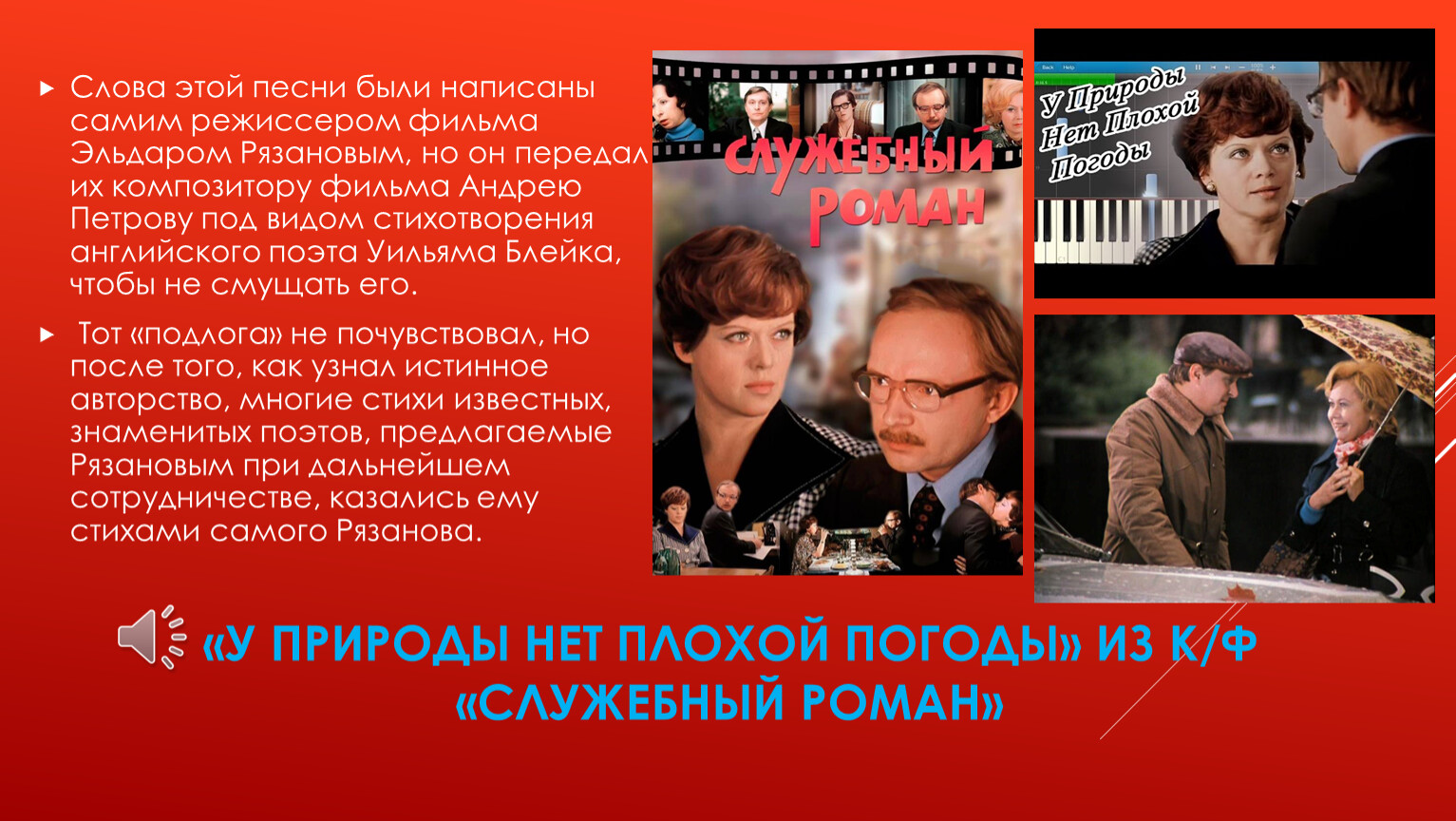 «У природы нет плохой погоды» из к/ф «Служебный роман»