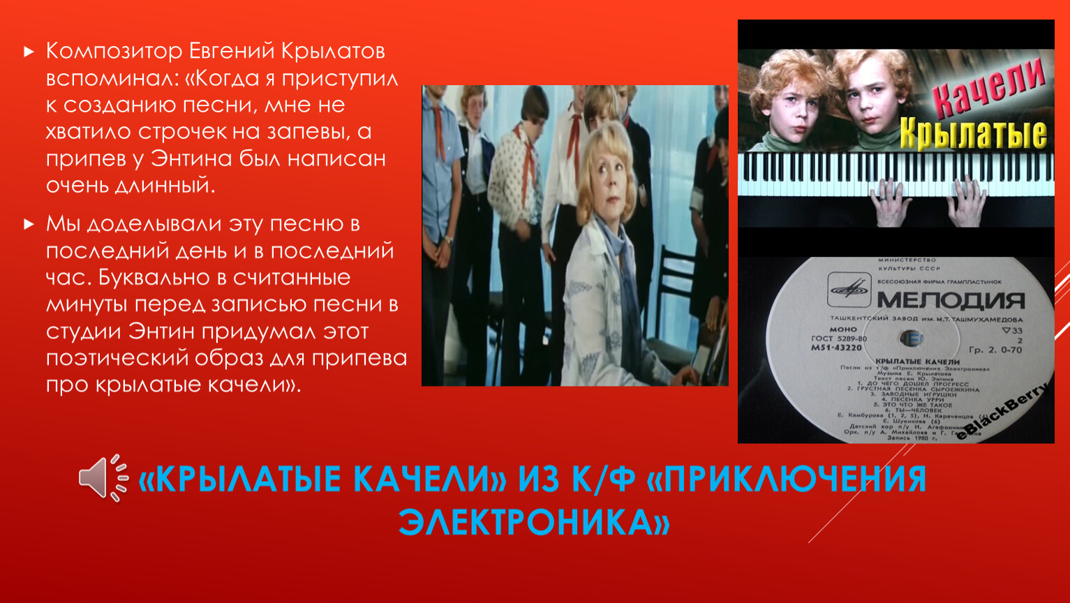«Крылатые качели» из к/ф «Приключения Электроника»
