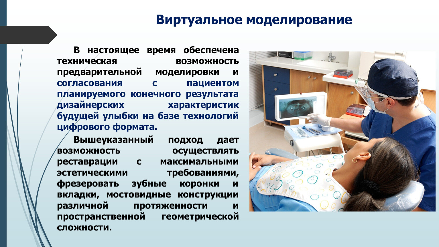 В настоящее время обеспечена техническая возможность предварительной моделировки и согласования с пациентом планируемого конечного результата дизайнерских характеристик будущей улыбки на базе технологий цифрового формата.