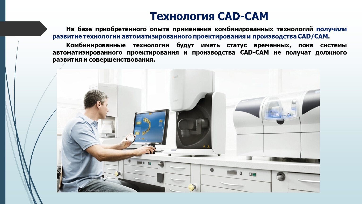 На базе приобретенного опыта применения комбинированных технологий получили развитие технологии автоматизированного проектирования и производства CAD/CAM.