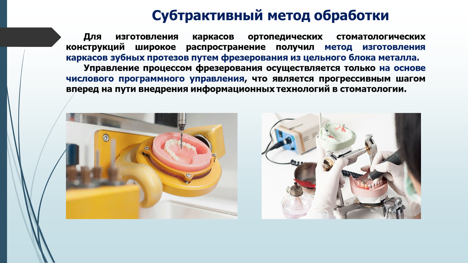 Управление процессом фрезерования осуществляется только на основе числового программного управления, что является прогрессивным шагом вперед на пути внедрения информационных технологий в стоматологии.
