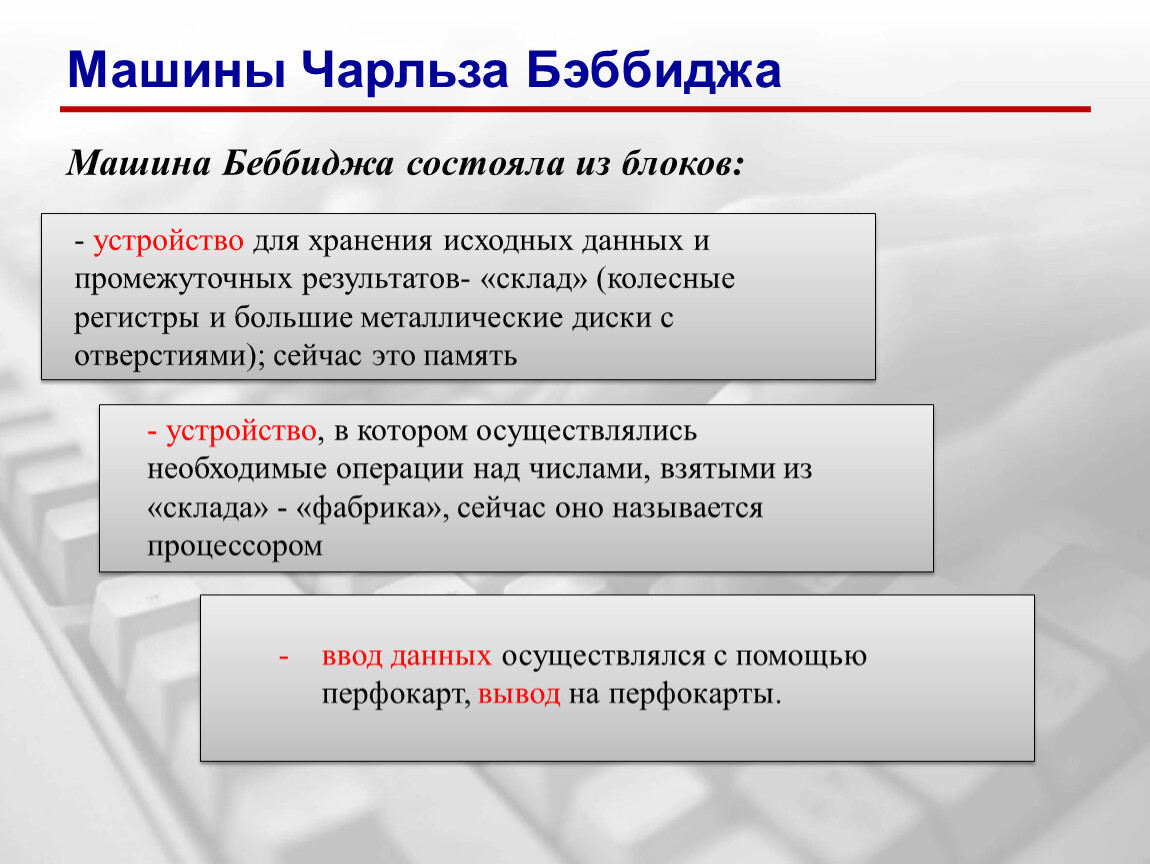 Машина Беббиджа состояла из блоков: